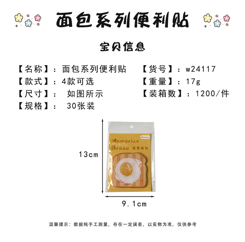 Ins Post-it 귀여운 만화 시뮬레이션 토스트 빵 학생 눈물 포스트잇 종이 스티커 노트 N 스티커
