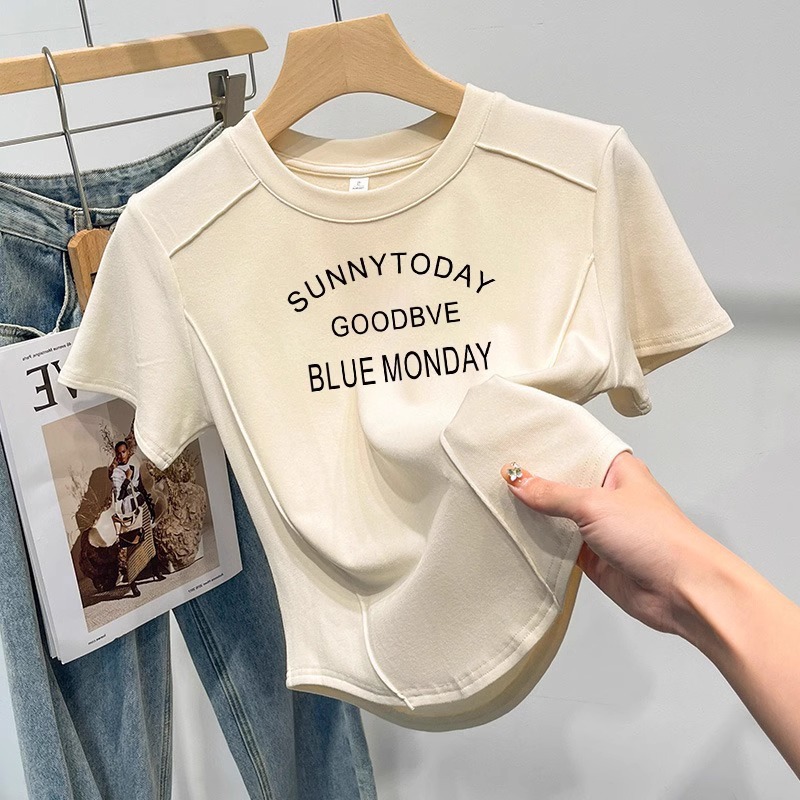 통통녀 플러스 사이즈 어깨 반팔 여자의 새로운 느슨한 슬리밍 벨리 커버 티셔츠 약간 통통한 여자 올 매치 여름 얇은 탑