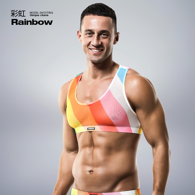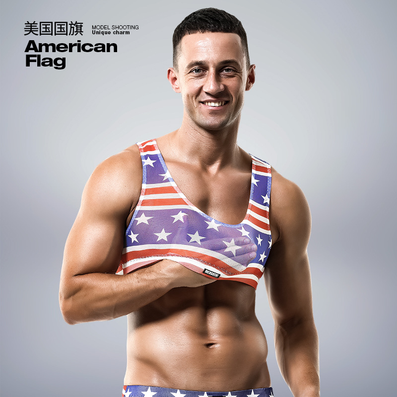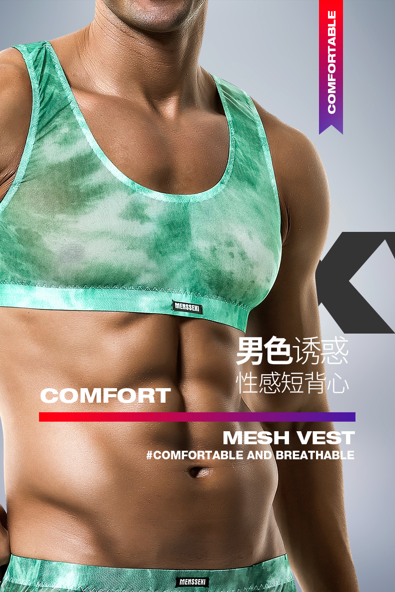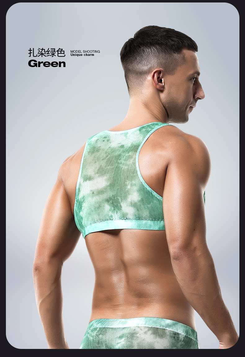 새로운 통기성 메쉬 반투명 섹시한 유혹 표범 무늬 무지개 시원한 느낌 국기 바나나 타이 염색 프린트 짧은 조끼스토어 가기
