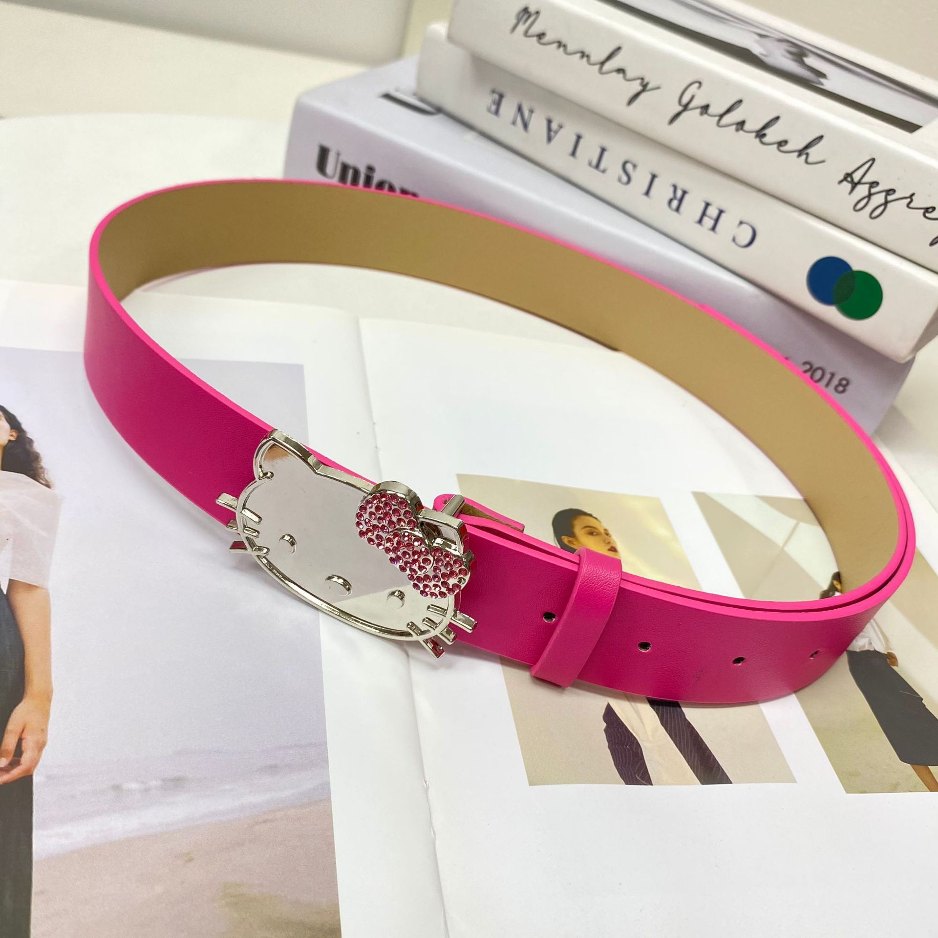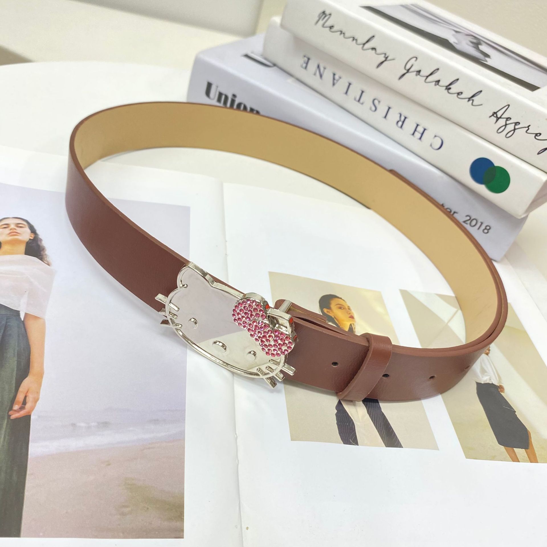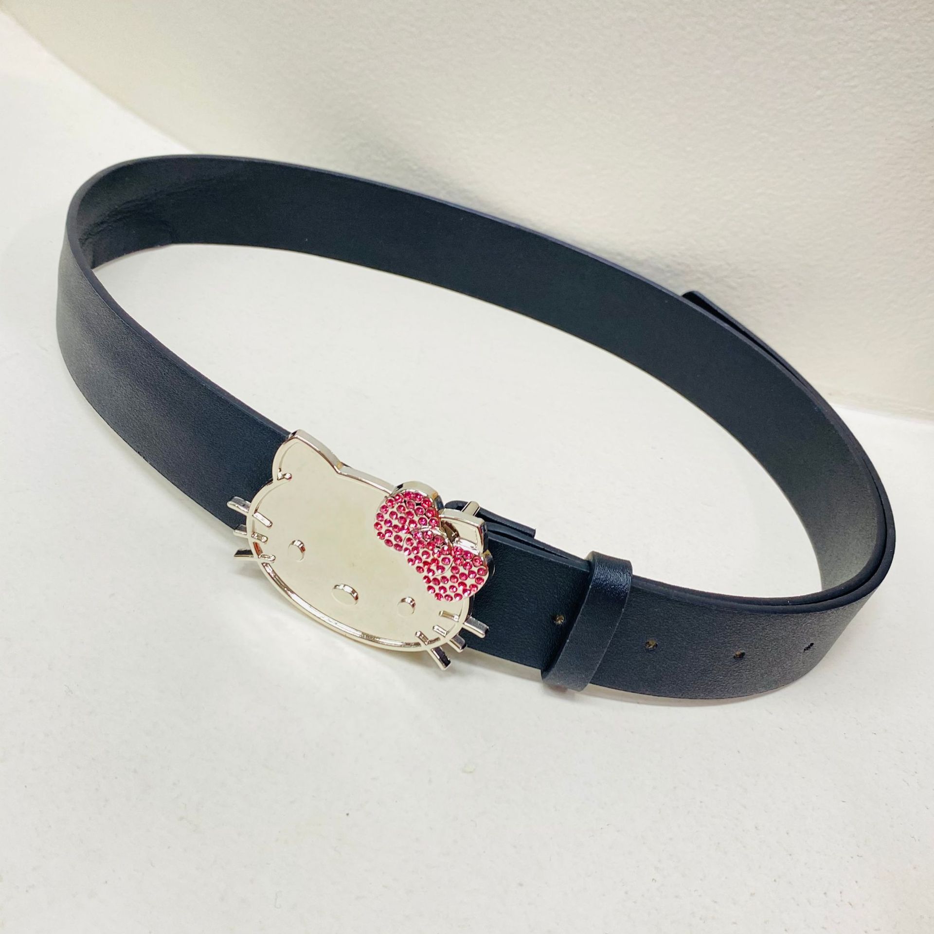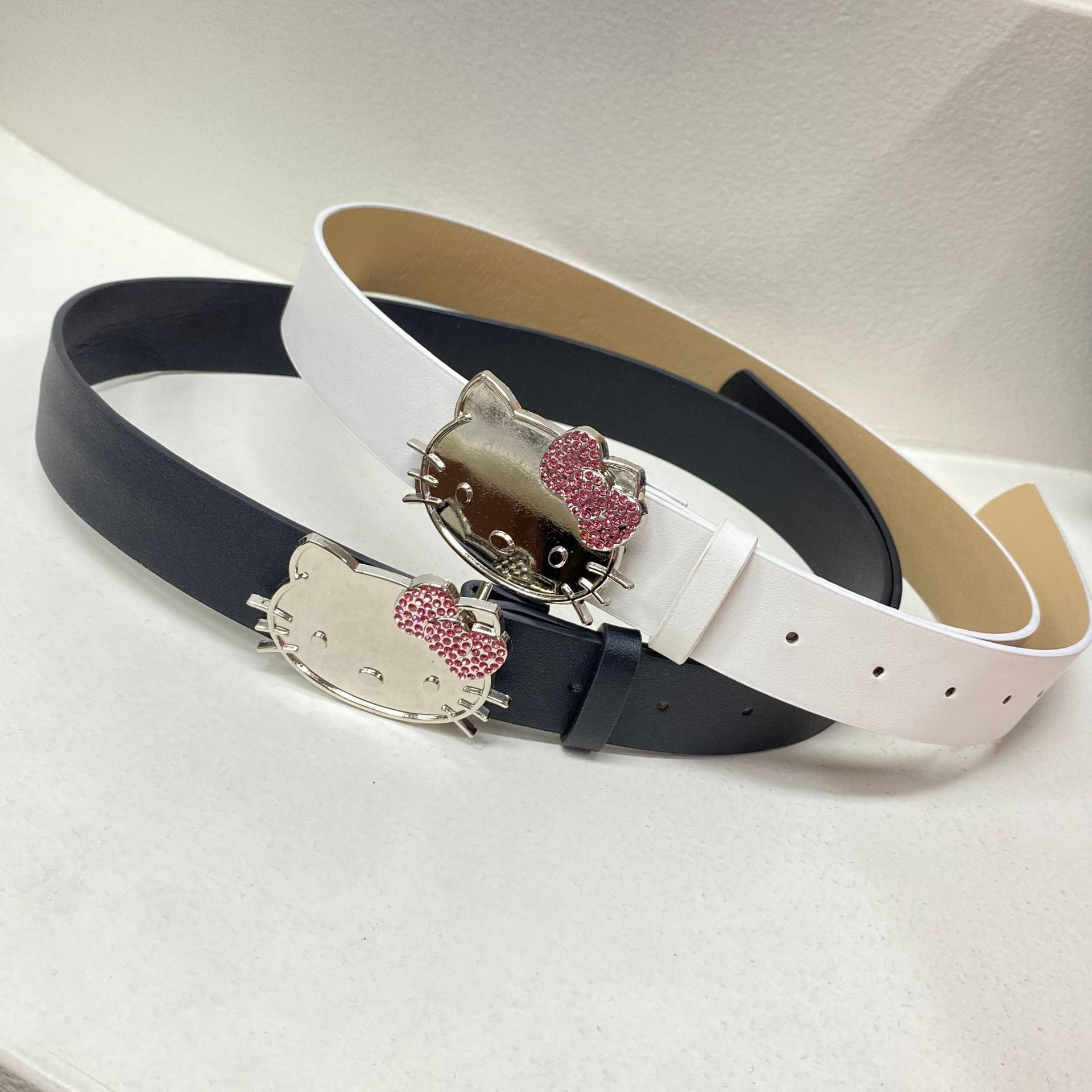 新款潮流KT猫头带钻女士腰带千禧辣妹y2k皮带女牛仔配饰百搭裤带