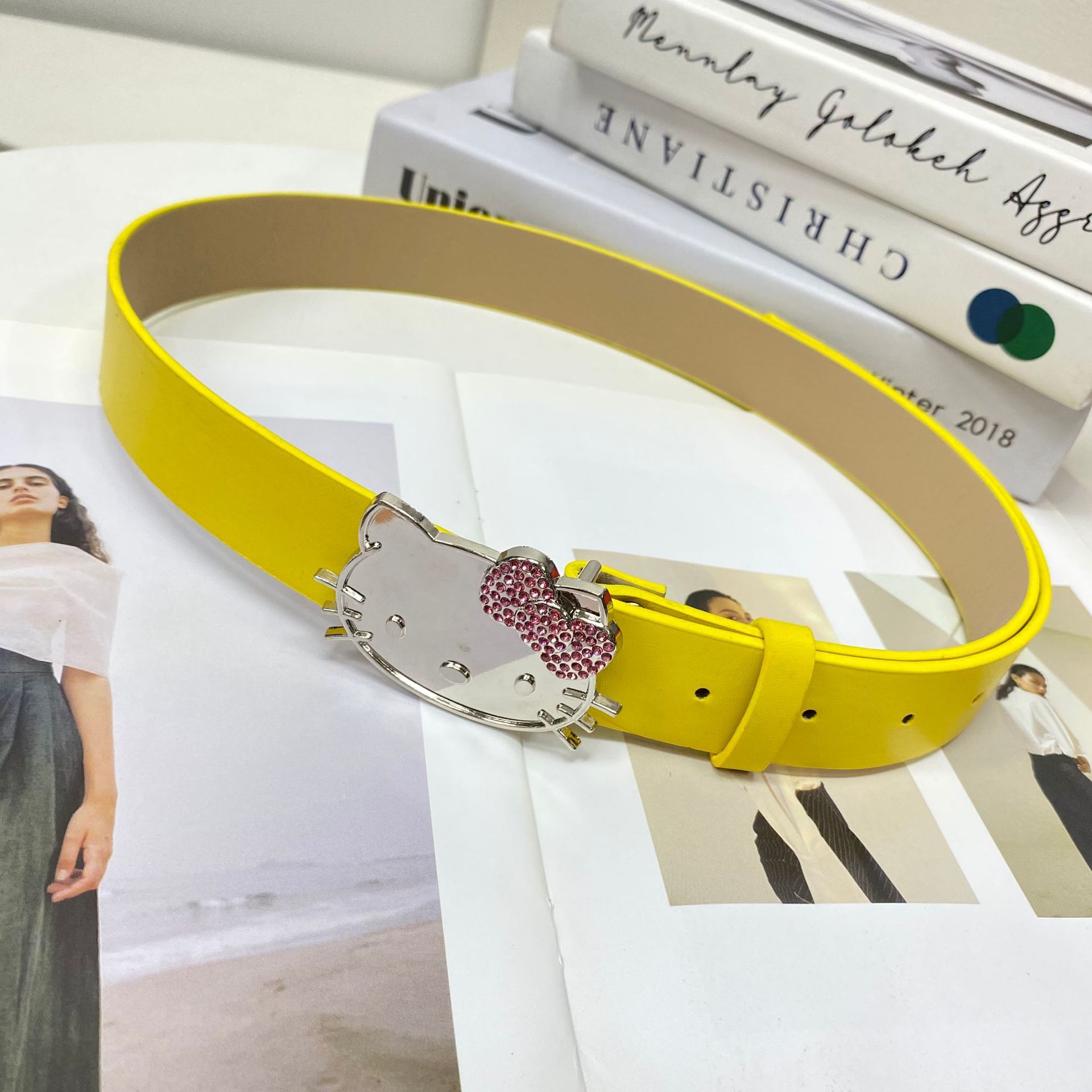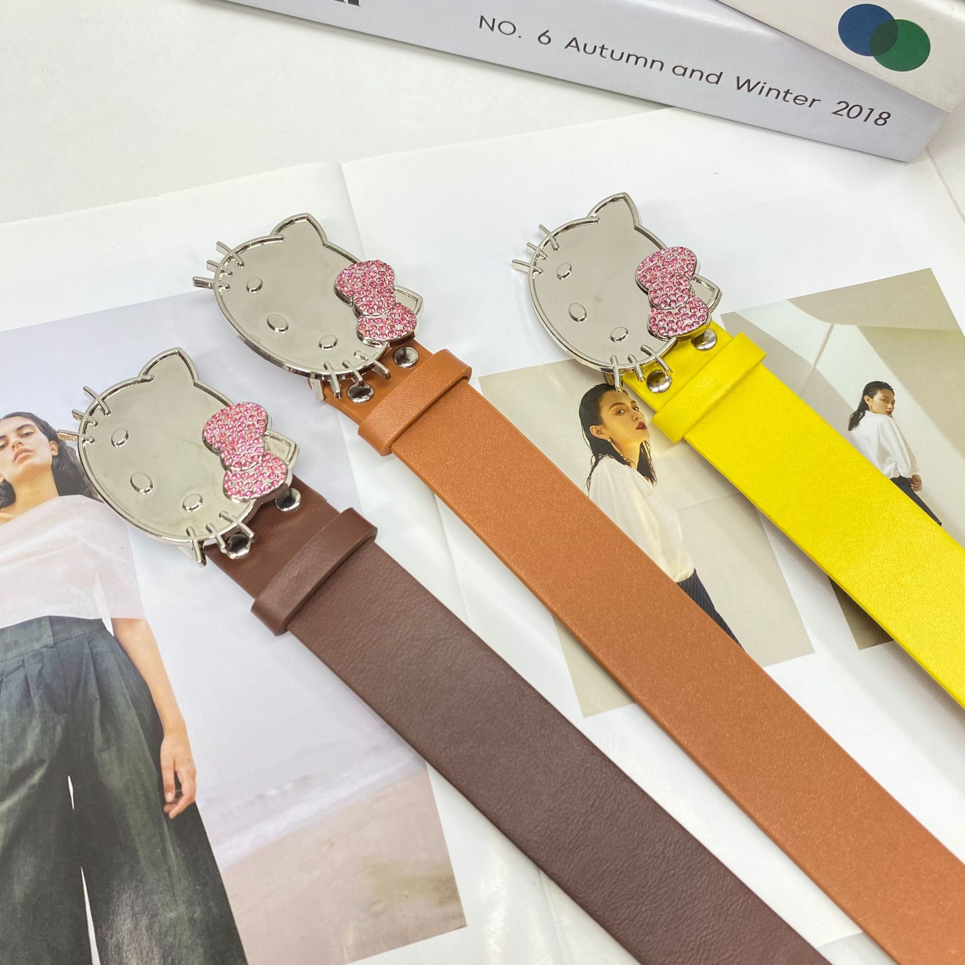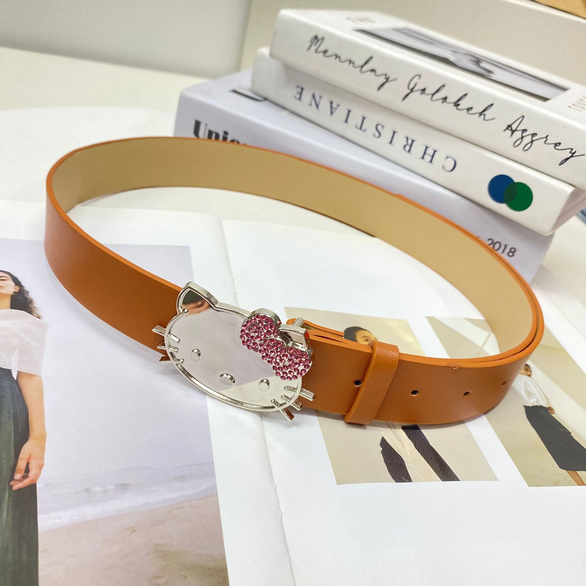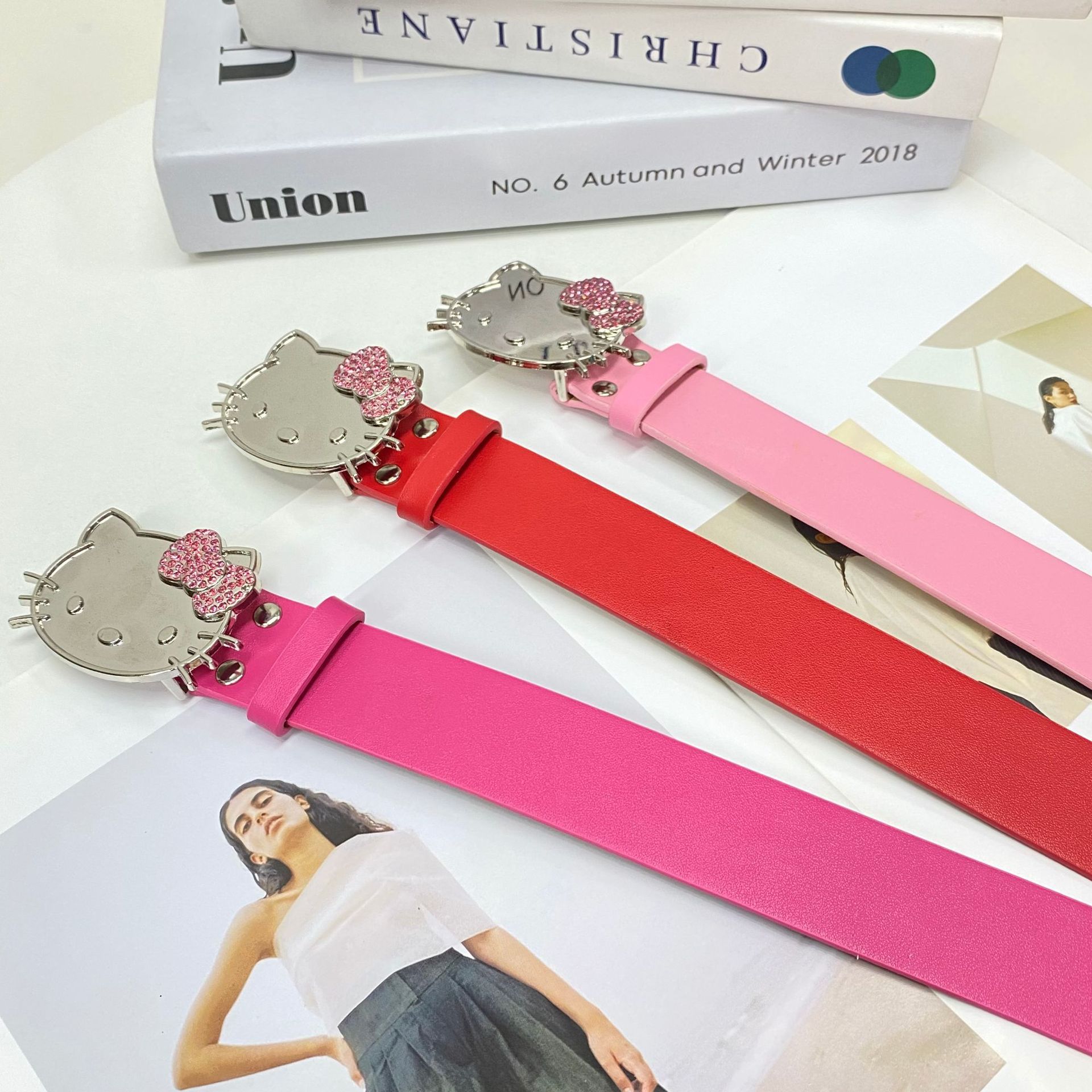 新款潮流KT猫头带钻女士腰带千禧辣妹y2k皮带女牛仔配饰百搭裤带