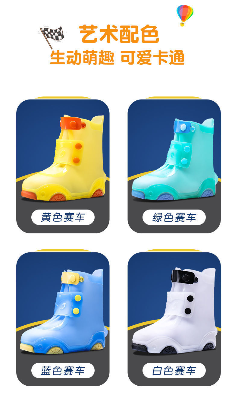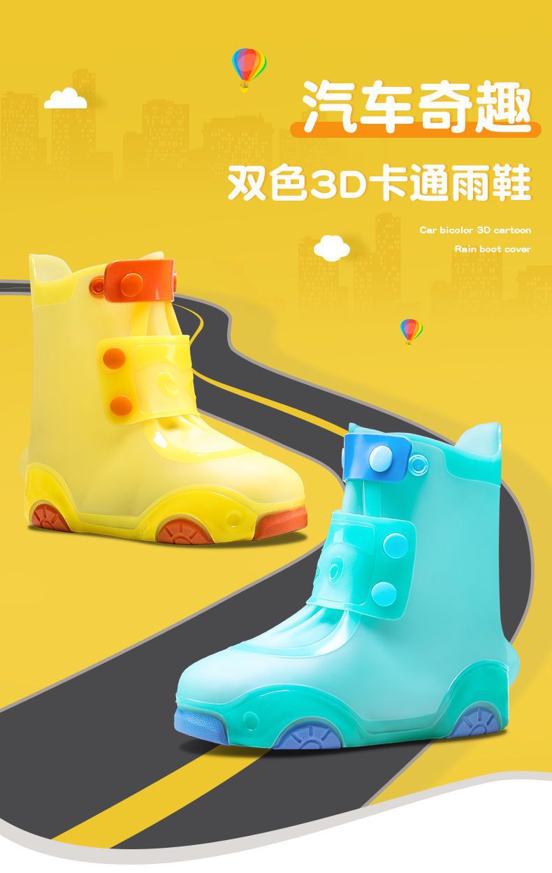 어린이 비 신발 커버 두꺼운 실리콘 미끄럼 방지 학생 신발 커버 만화 비 신발 커버 스냅 버튼 방수 신발 커버스토어 가기