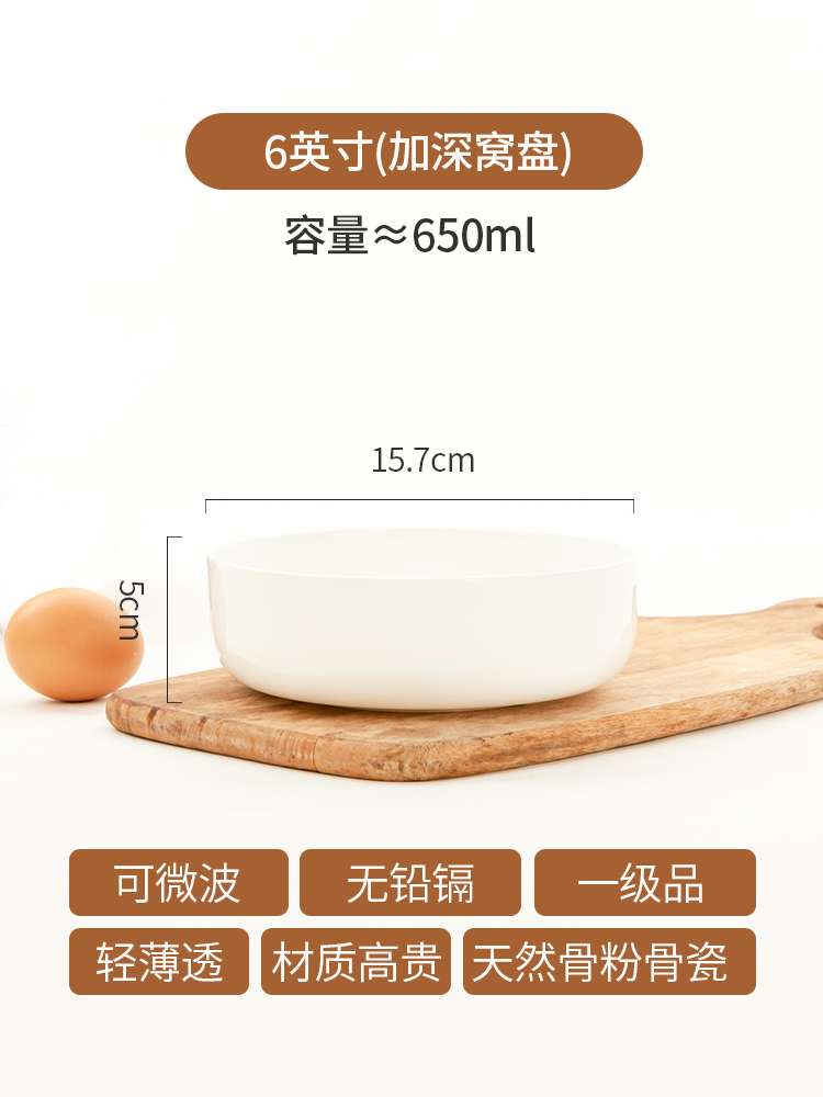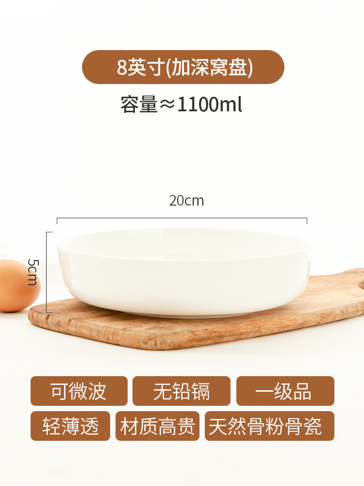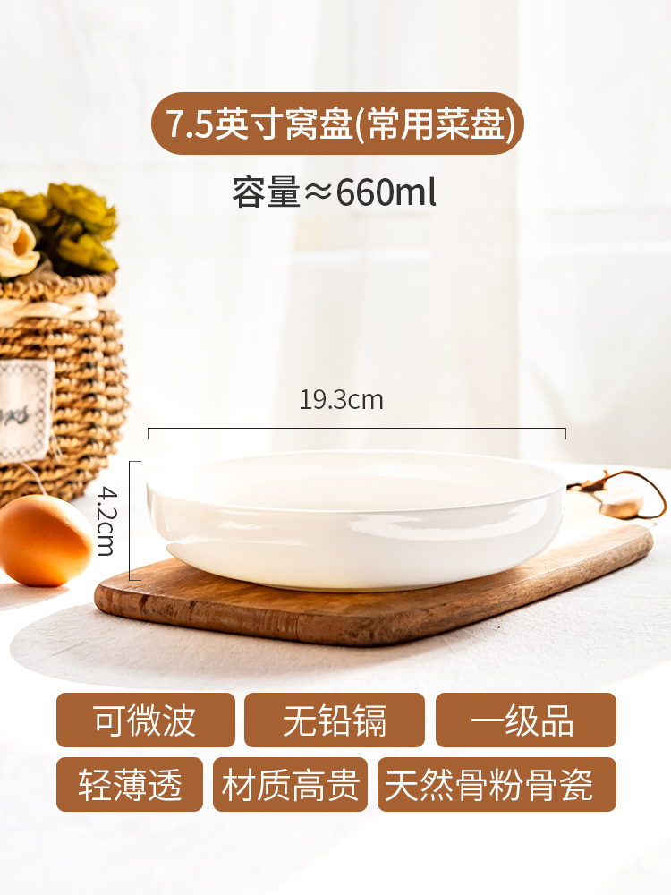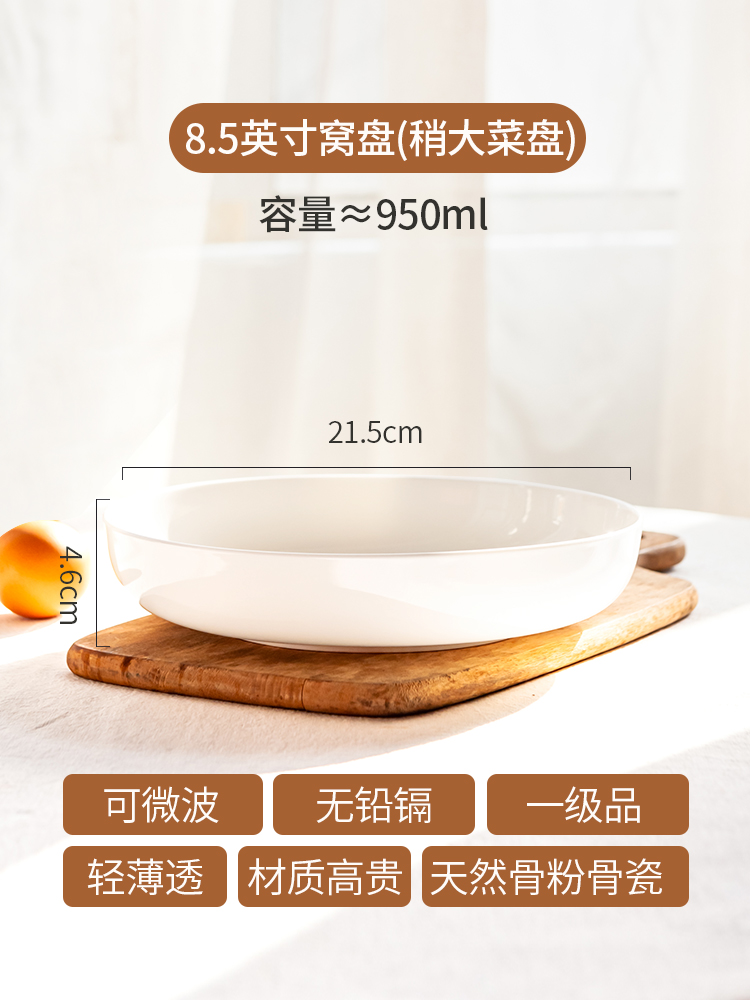 순수한 흰 뼈 중국 접시 접시 가정용 창조적 인 세라믹 식기 북유럽 라운드 볶음 수프 접시 샐러드 깊은 접시 둥지스토어 가기