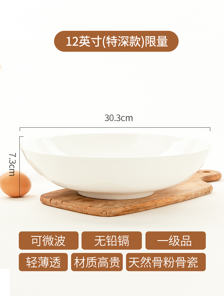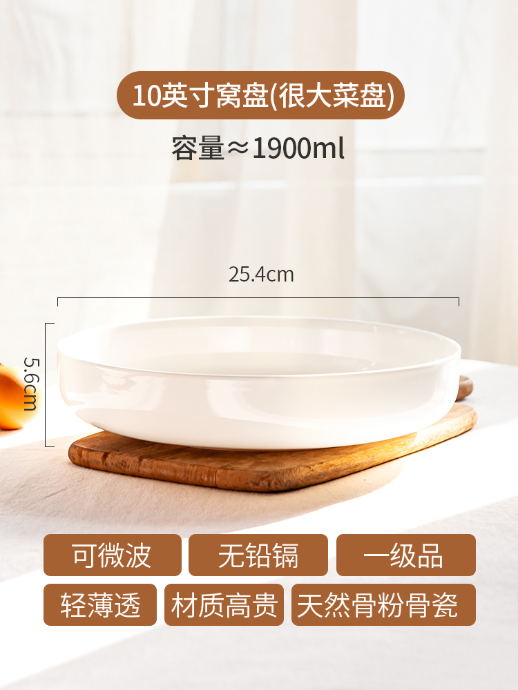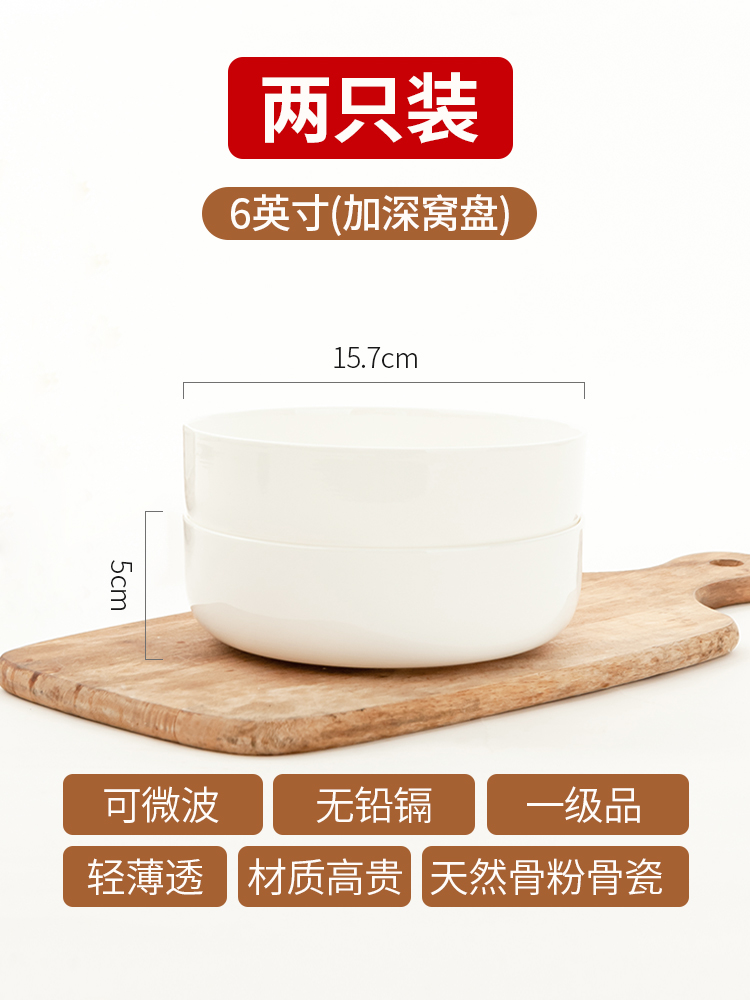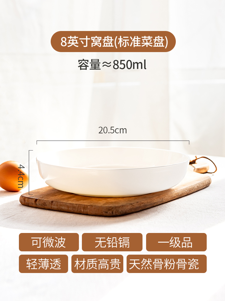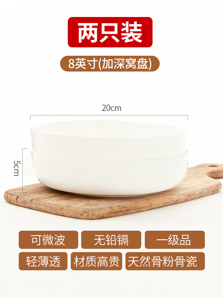순수한 흰 뼈 중국 접시 접시 가정용 창조적 인 세라믹 식기 북유럽 라운드 볶음 수프 접시 샐러드 깊은 접시 둥지스토어 가기