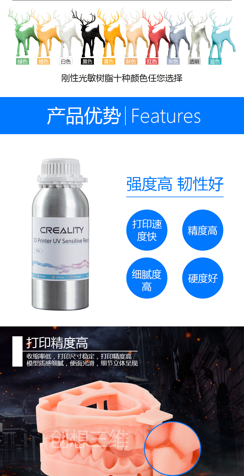 창조적 인 3D 빛 경화 3D 인쇄 소모품 LCD 보편적 인 강성 감광 수지 500g스토어 가기