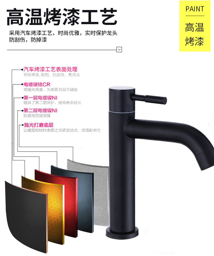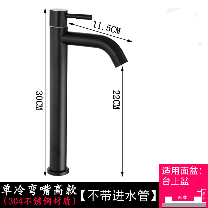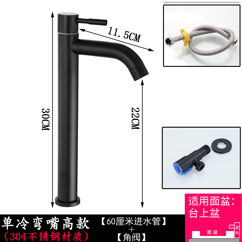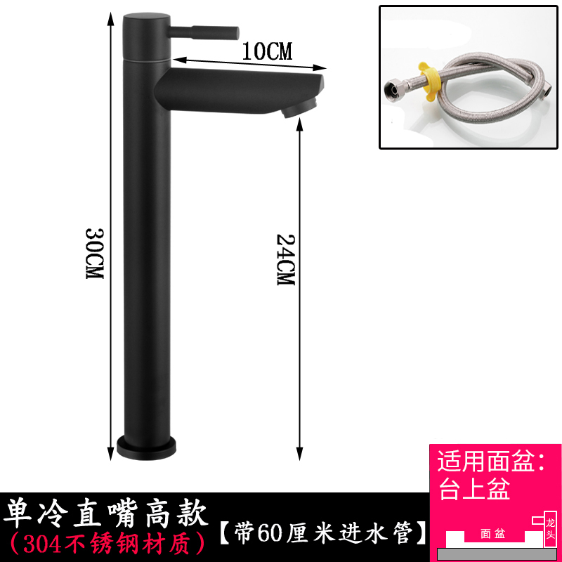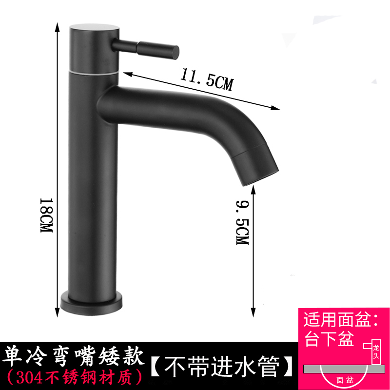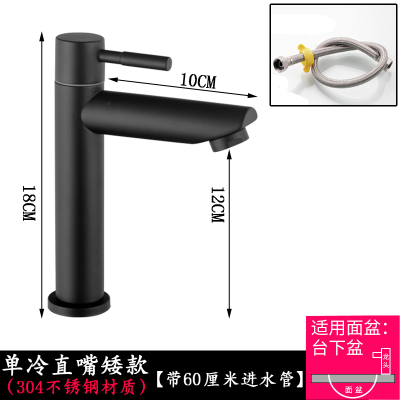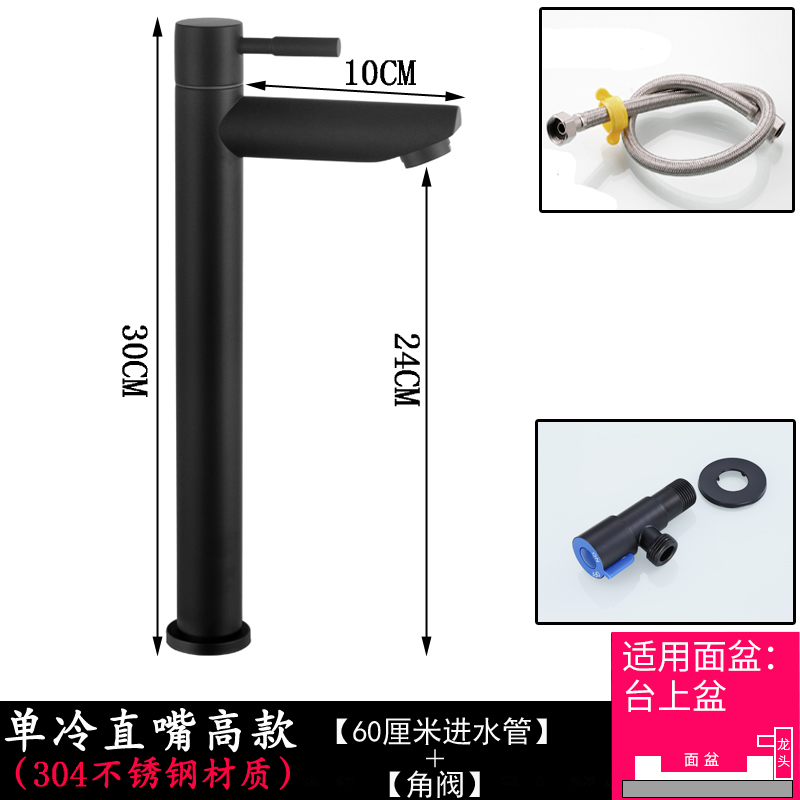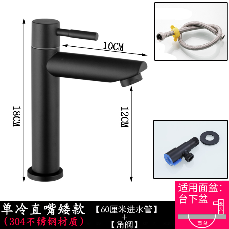 304 스테인레스 스틸 단일 차가운 수도꼭지 검은 욕실 얼굴 분지 손 분지 단일 구멍 수직 발코니 수도꼭지스토어 가기