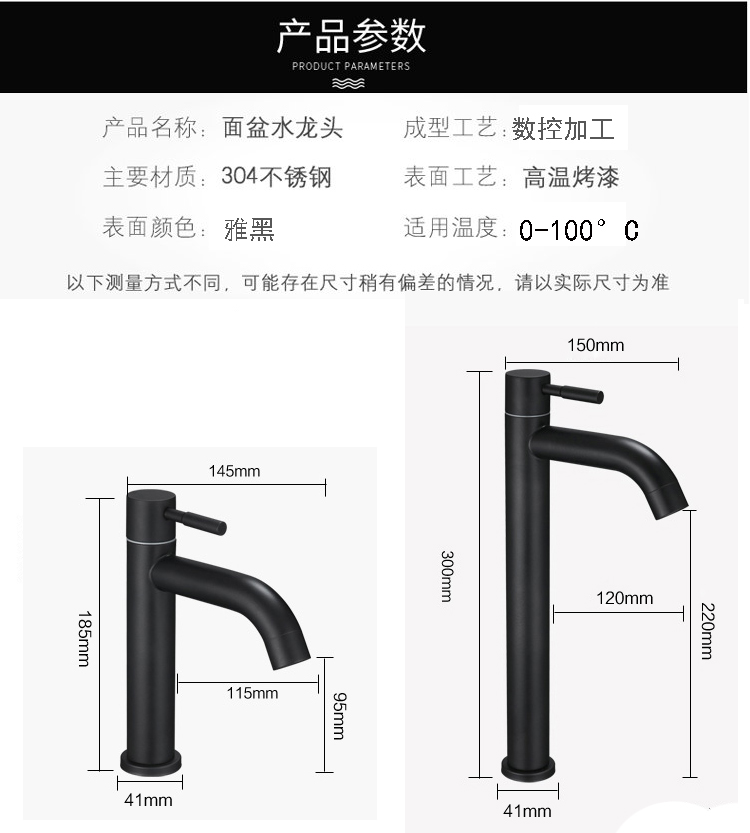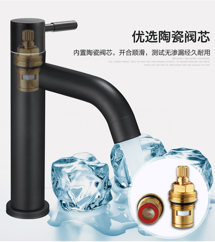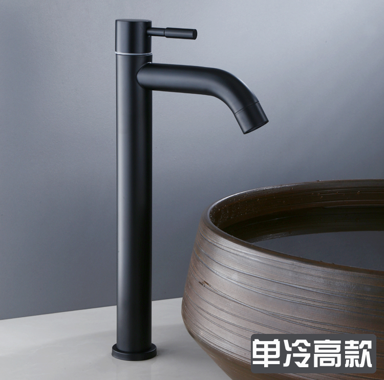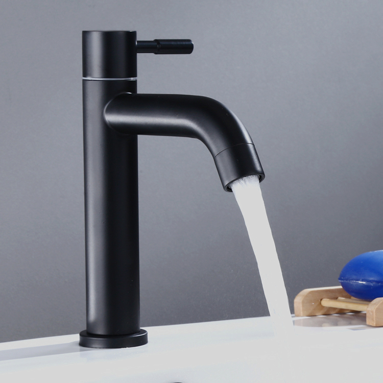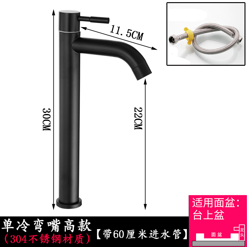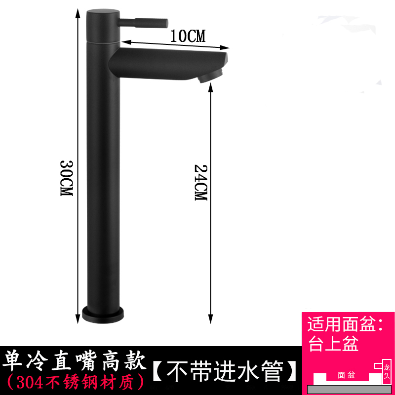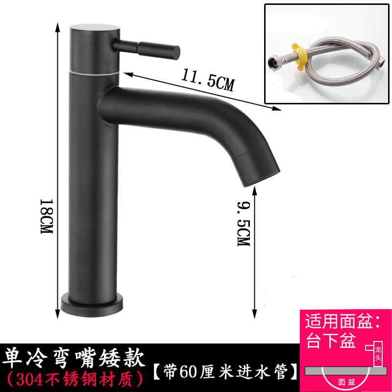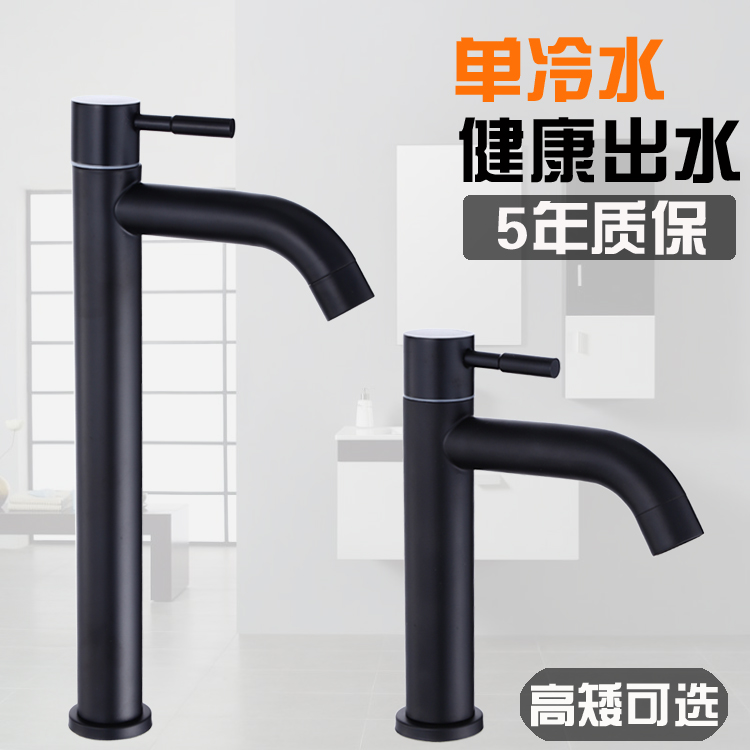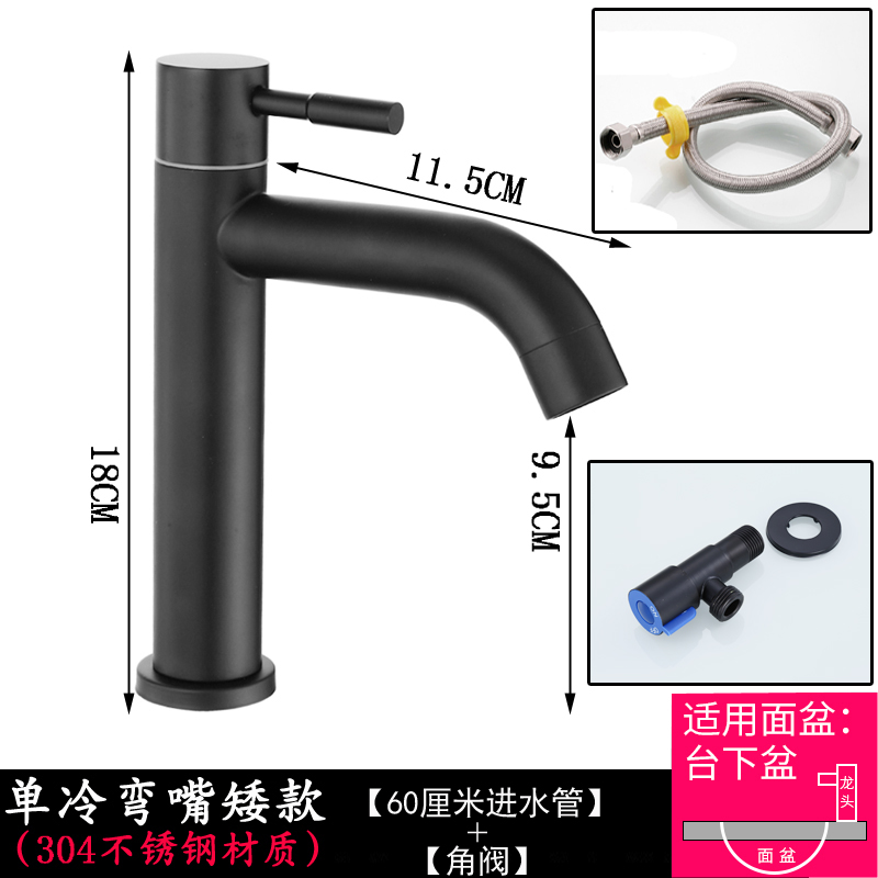 304 스테인레스 스틸 단일 차가운 수도꼭지 검은 욕실 얼굴 분지 손 분지 단일 구멍 수직 발코니 수도꼭지
