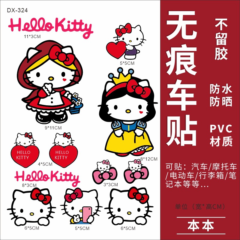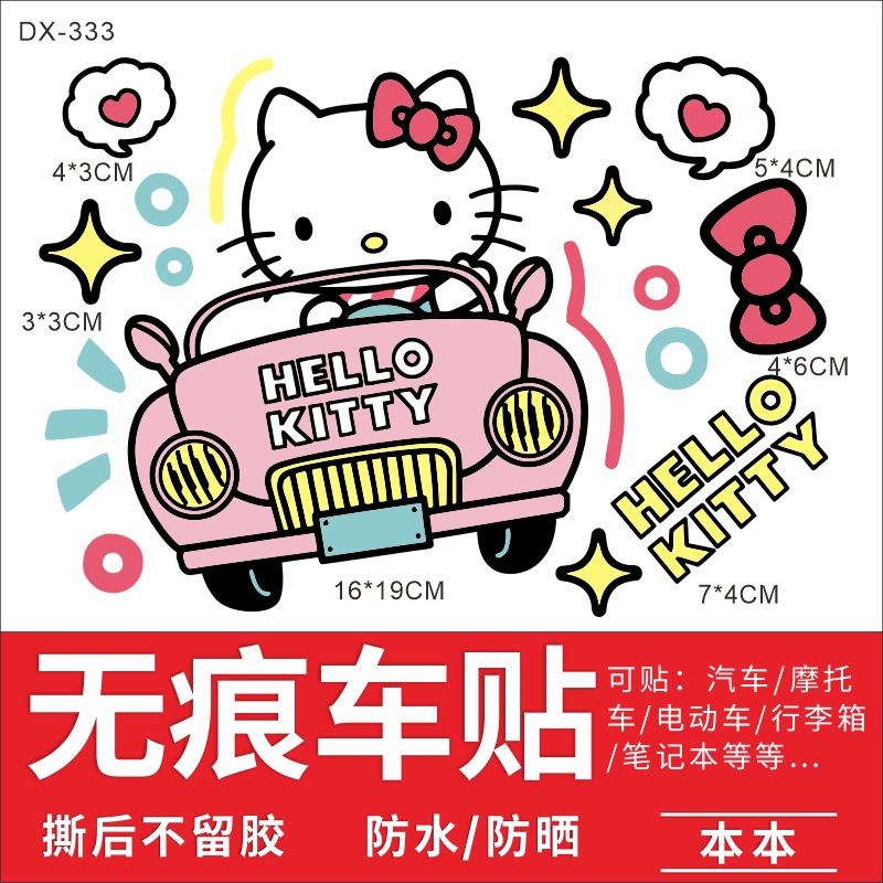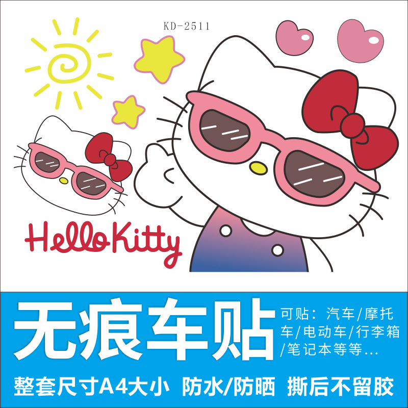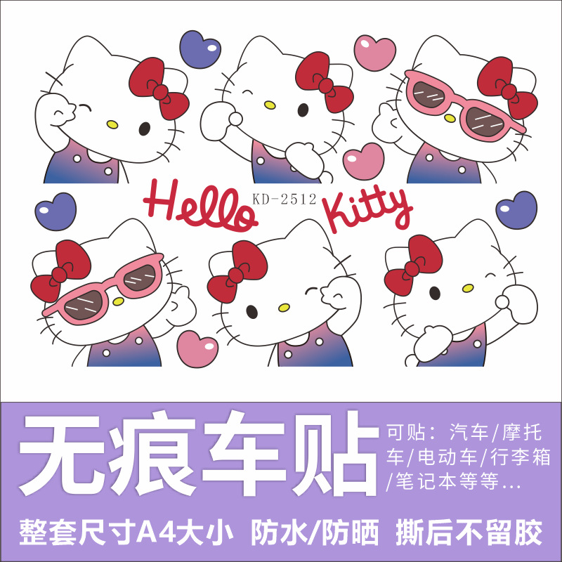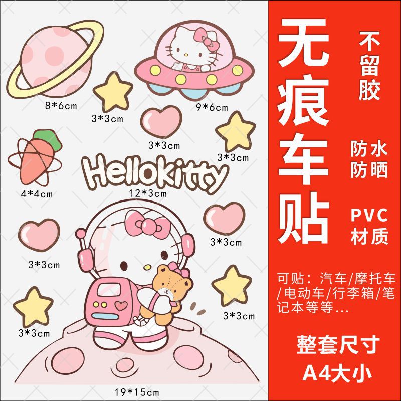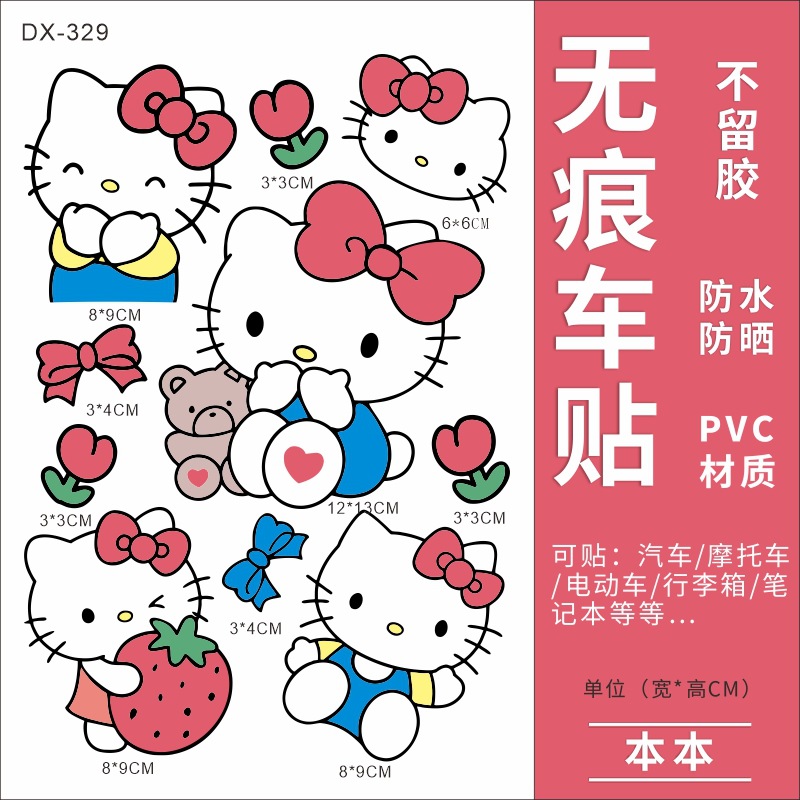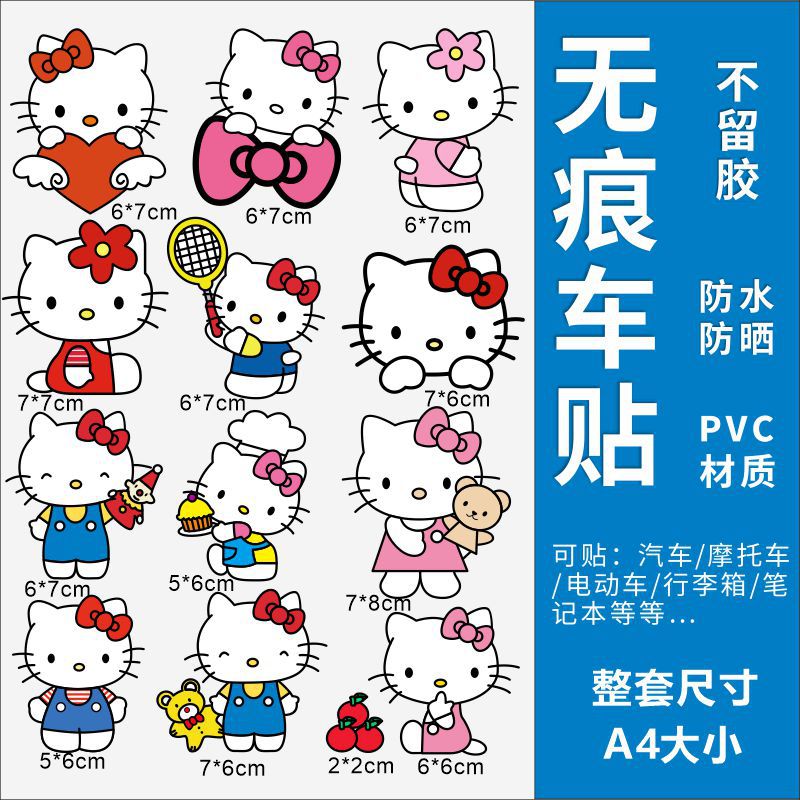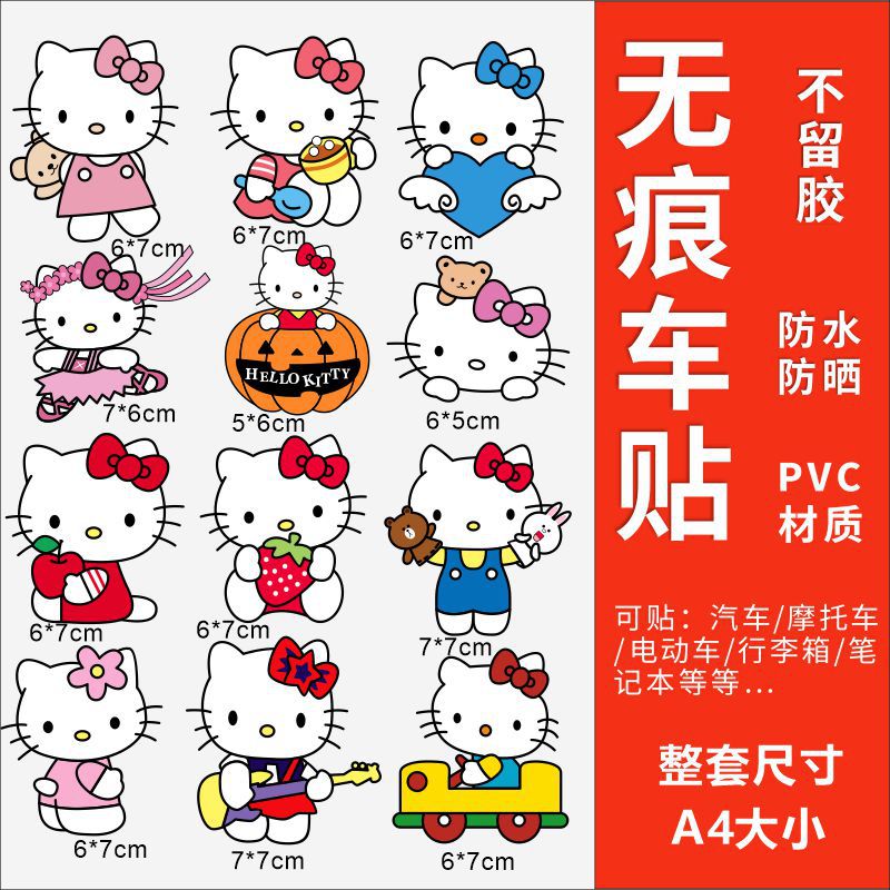 Hellokitty 헬로 키티 자동차 스티커 전기 자동차 장식 스티커 만화 귀여운 Kt 고양이 스티커 방수 태양 보호 스티커스토어 가기