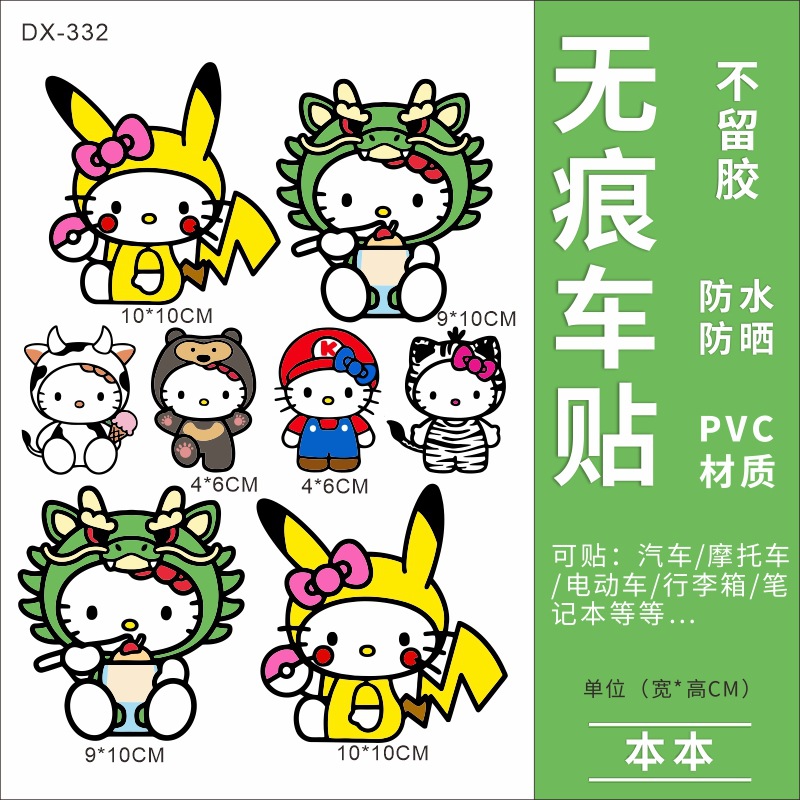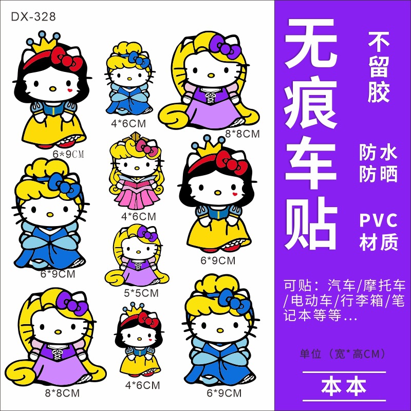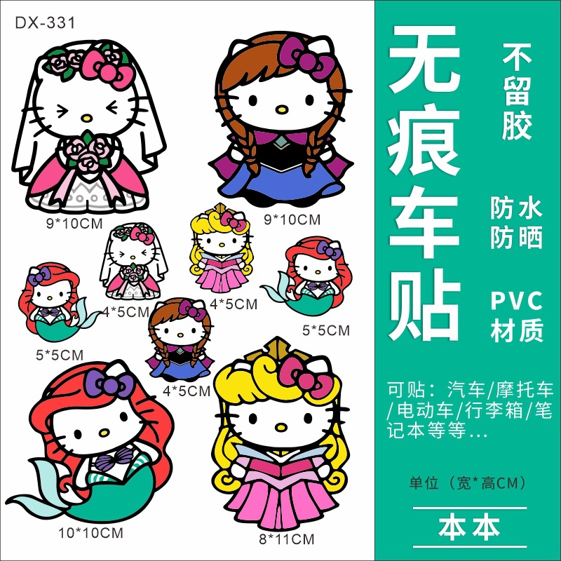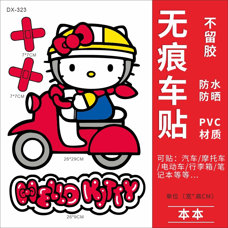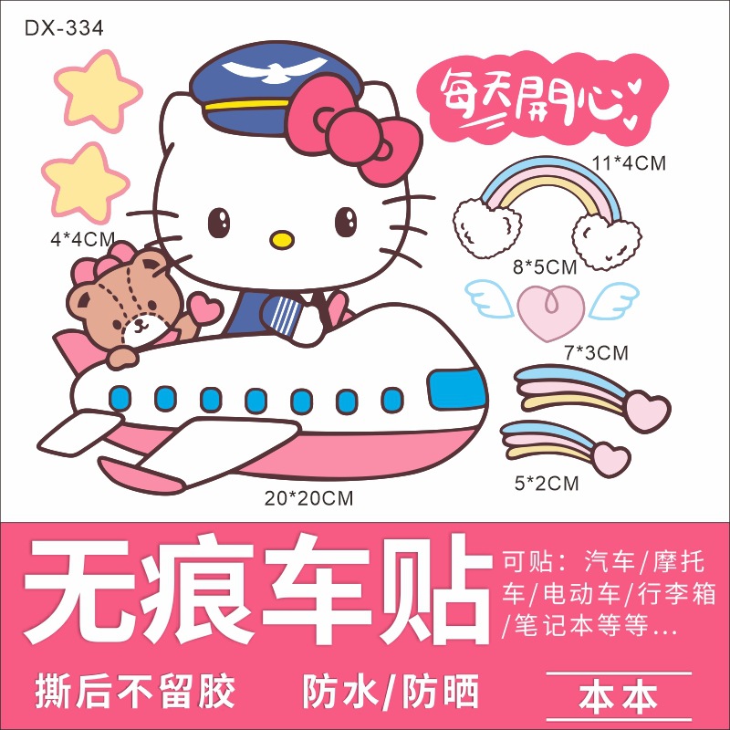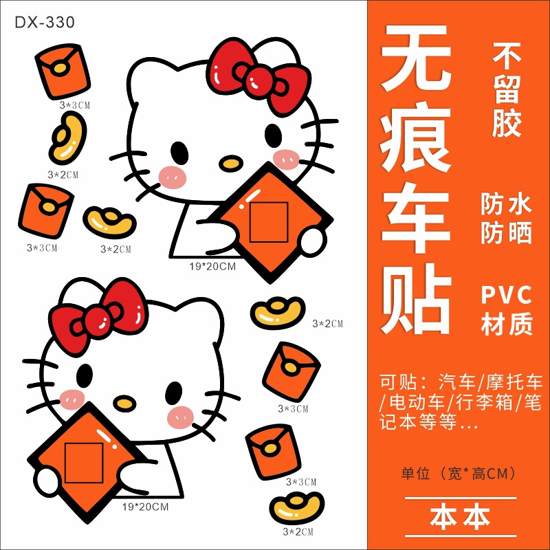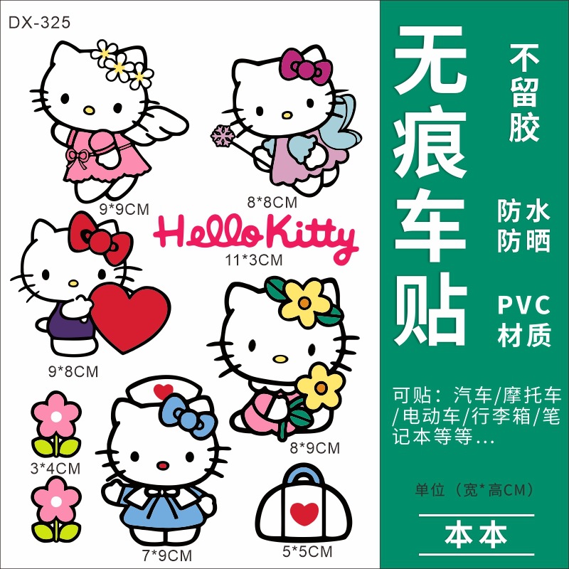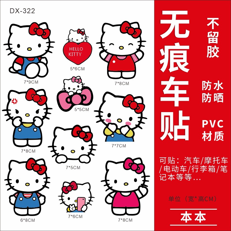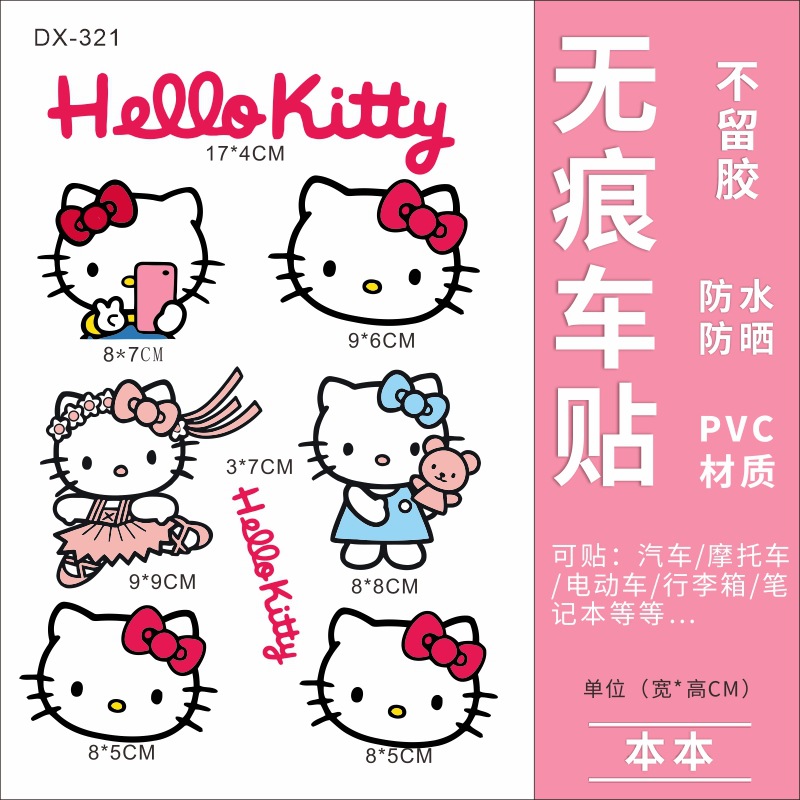 Hellokitty 헬로 키티 자동차 스티커 전기 자동차 장식 스티커 만화 귀여운 Kt 고양이 스티커 방수 태양 보호 스티커스토어 가기