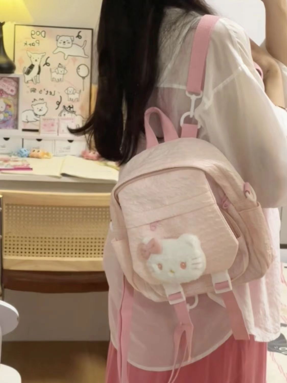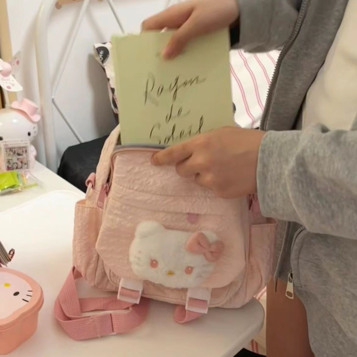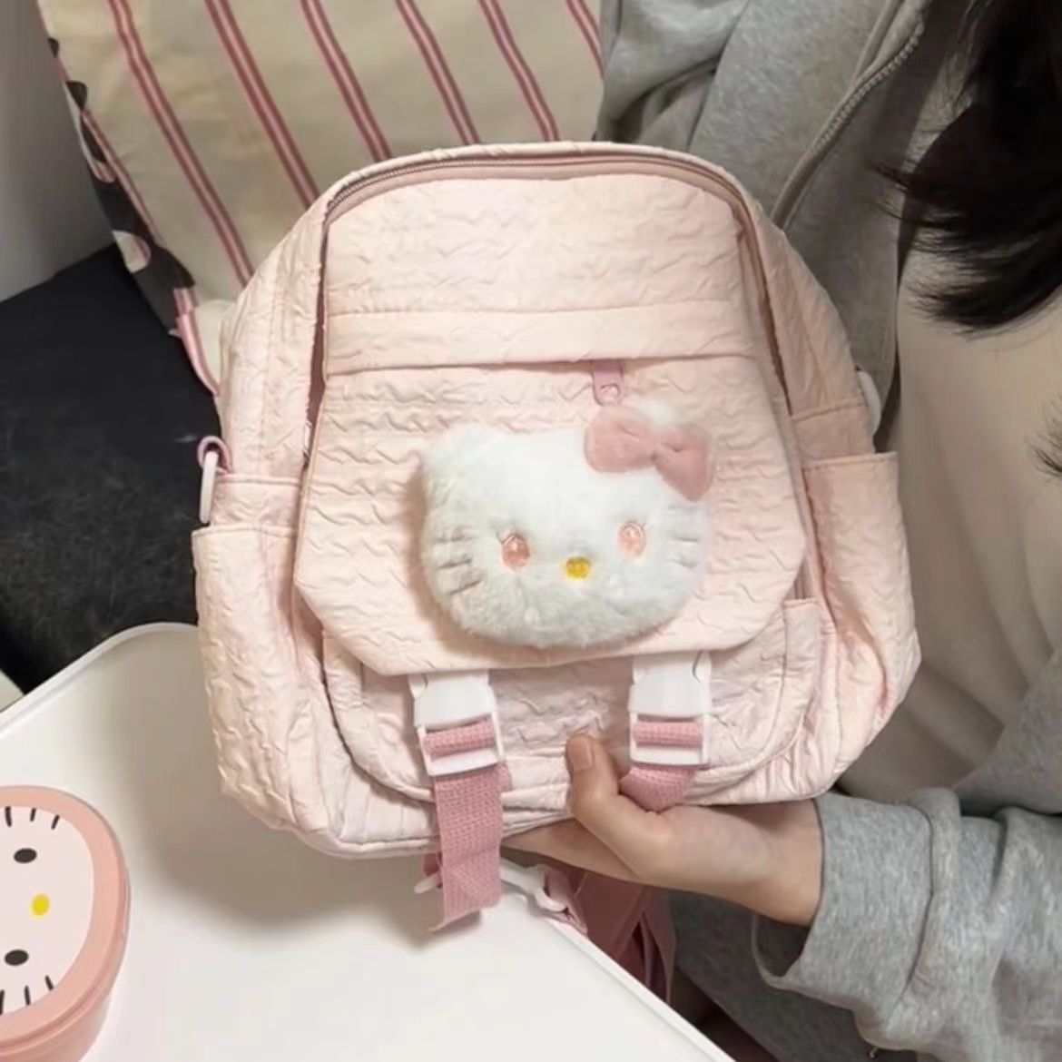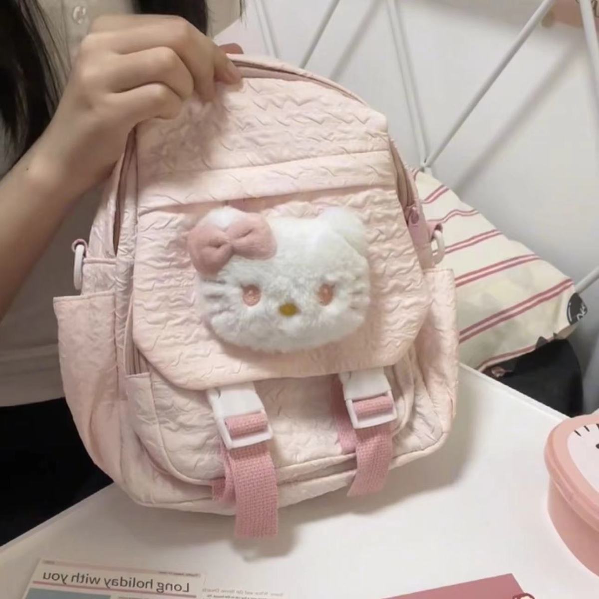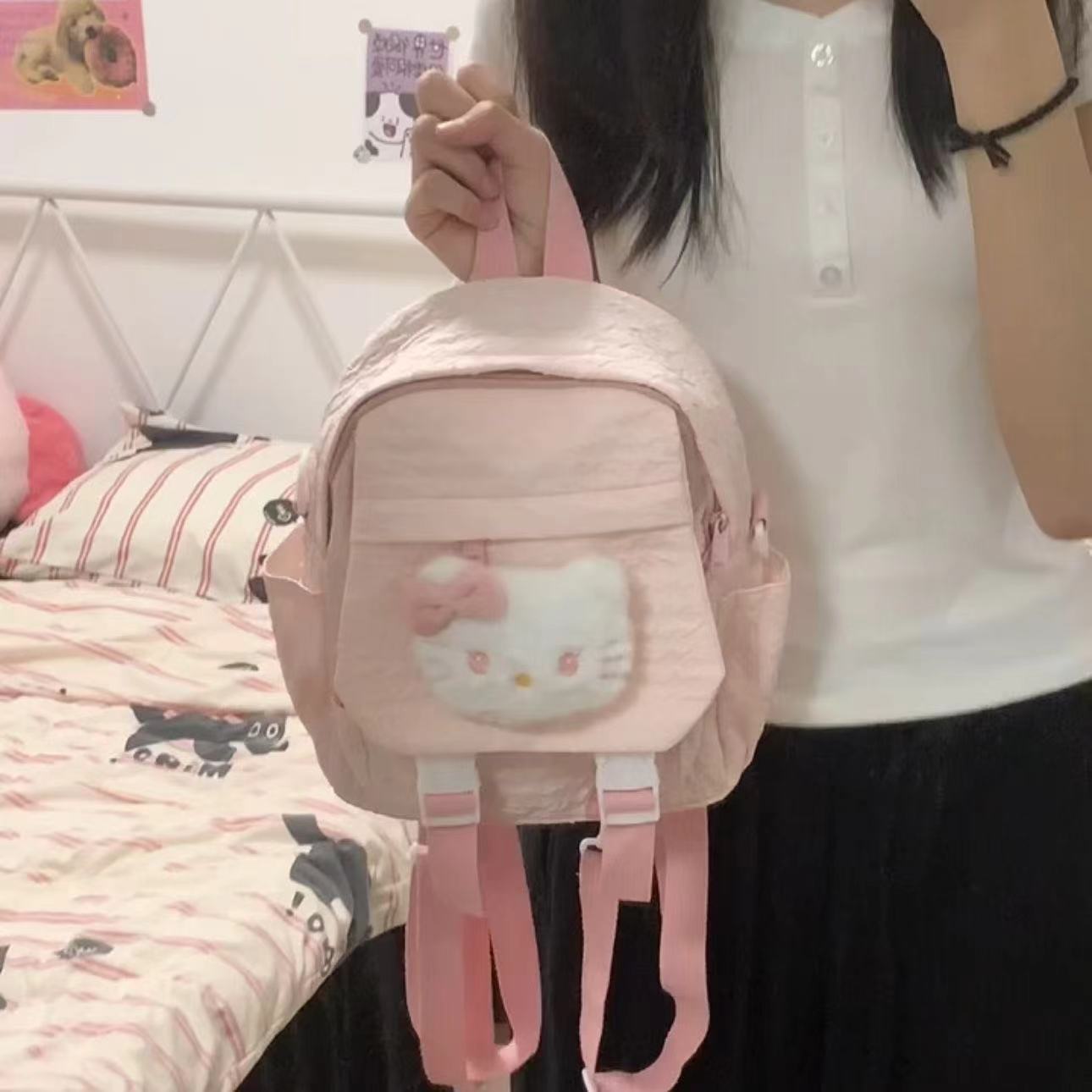 한국 스타일 신선한 스타일 소녀의 귀여운 배낭 2024 새로운 접힌 섬유 학생의 여성용 헬멧 배낭스토어 가기