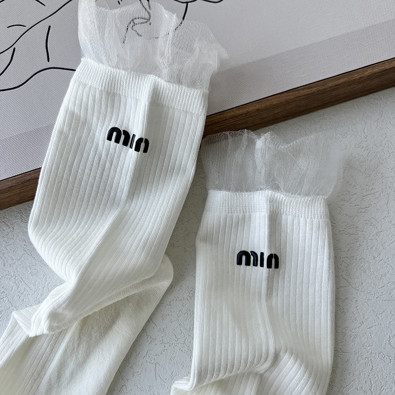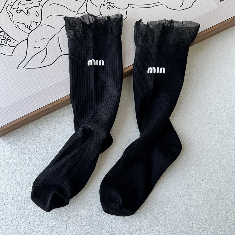 SD2197-11 슈퍼 소프트 레이스 양말 여성 중간 길이 양말 발레 스택 양말 분 앞 편지 패션 양말 라이브 폭발스토어 가기