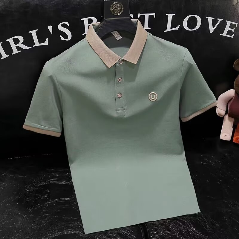 2024 옷깃 반팔 폴로 셔츠 남자 유행 브랜드 여름 티셔츠 한국 스타일 슬림 핏 유행 2024 새로운 올 매치 탑스토어 가기