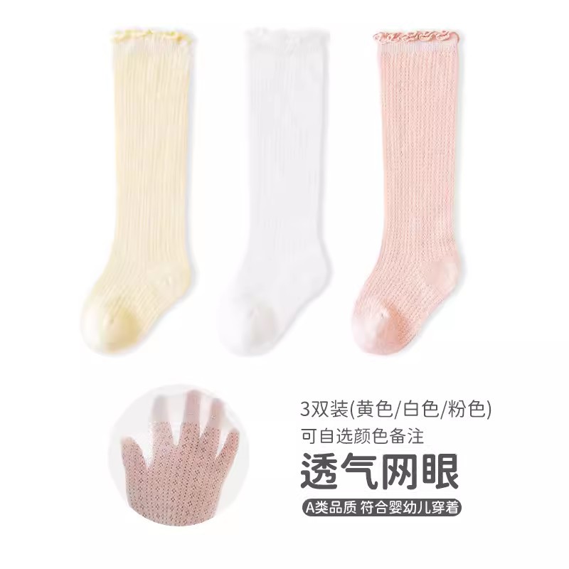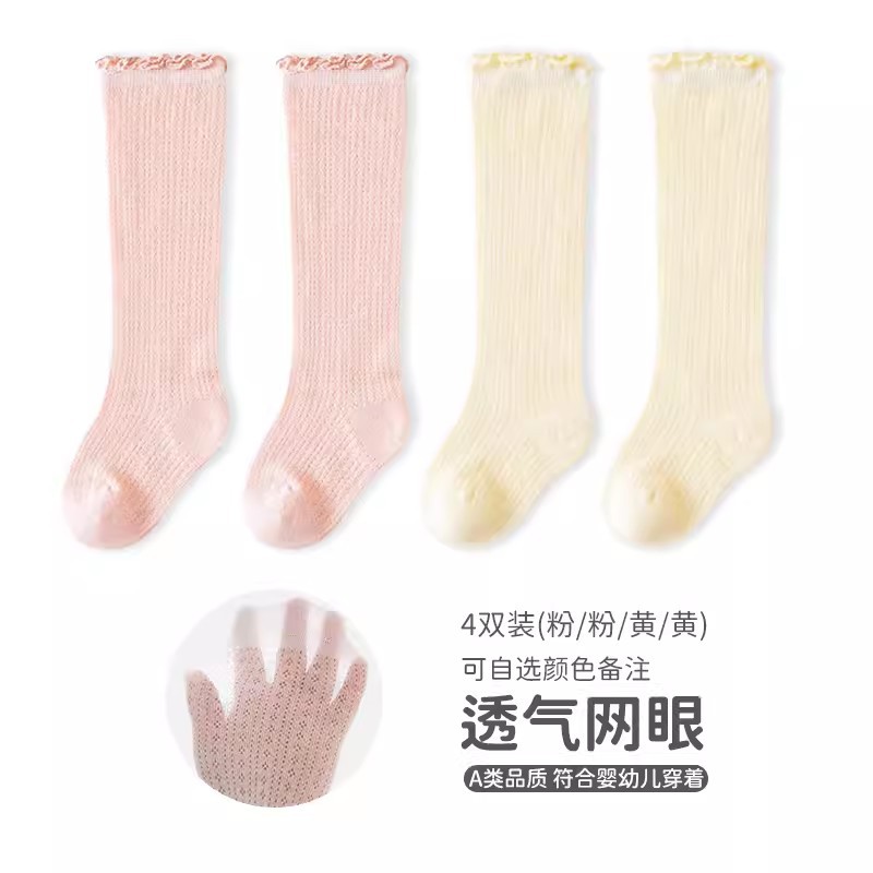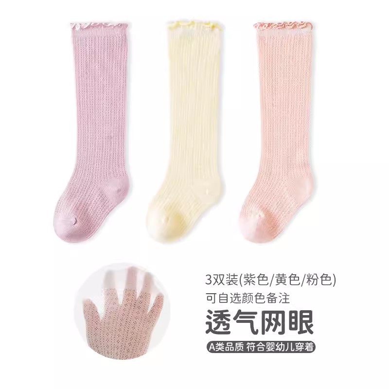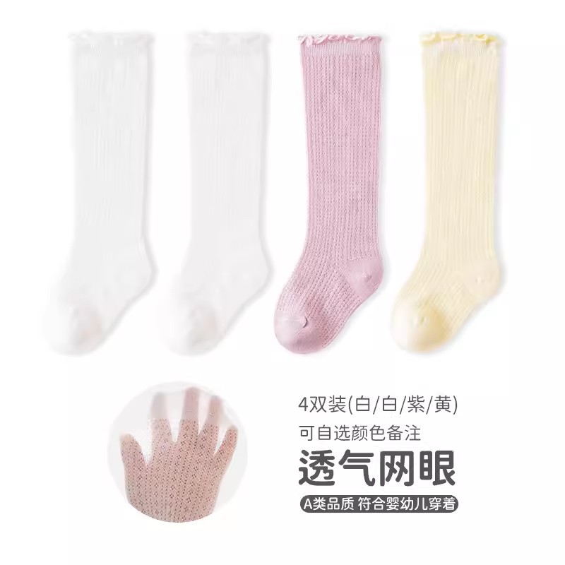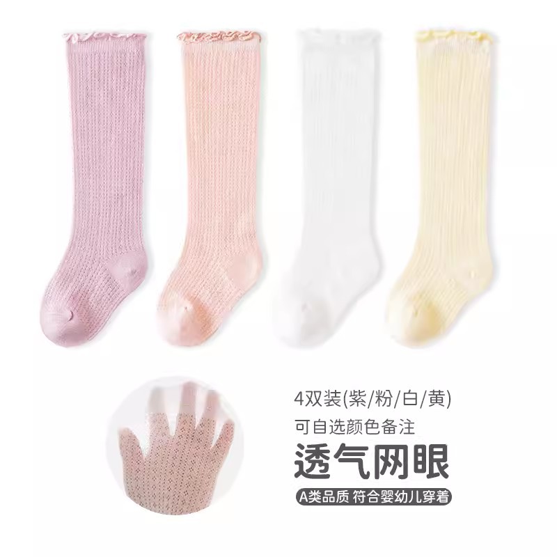 엄선된 아동용 무릎 위 양말, 봄 여름용 코마면 아동용 긴 양말, 통기성 좋은 메쉬 소재 캔디 컬러 아기 양말스토어 가기