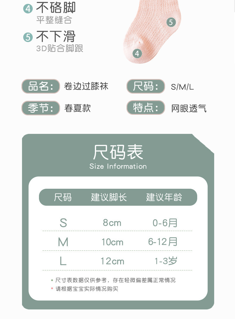 엄선된 아동용 무릎 위 양말, 봄 여름용 코마면 아동용 긴 양말, 통기성 좋은 메쉬 소재 캔디 컬러 아기 양말