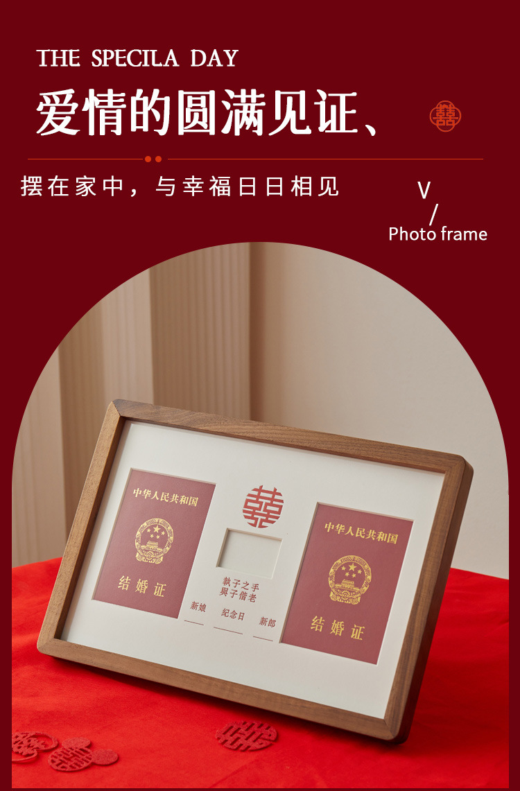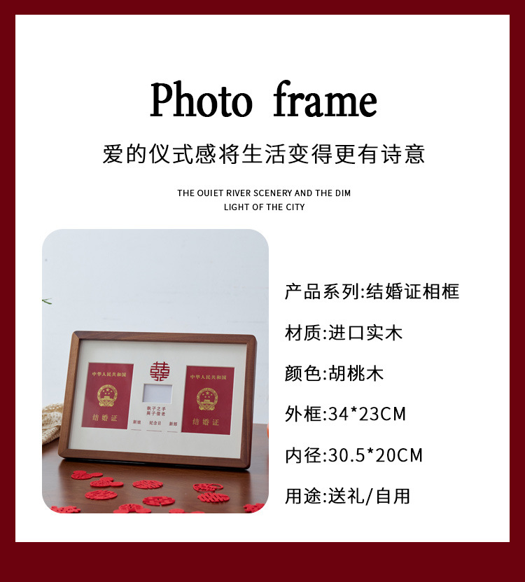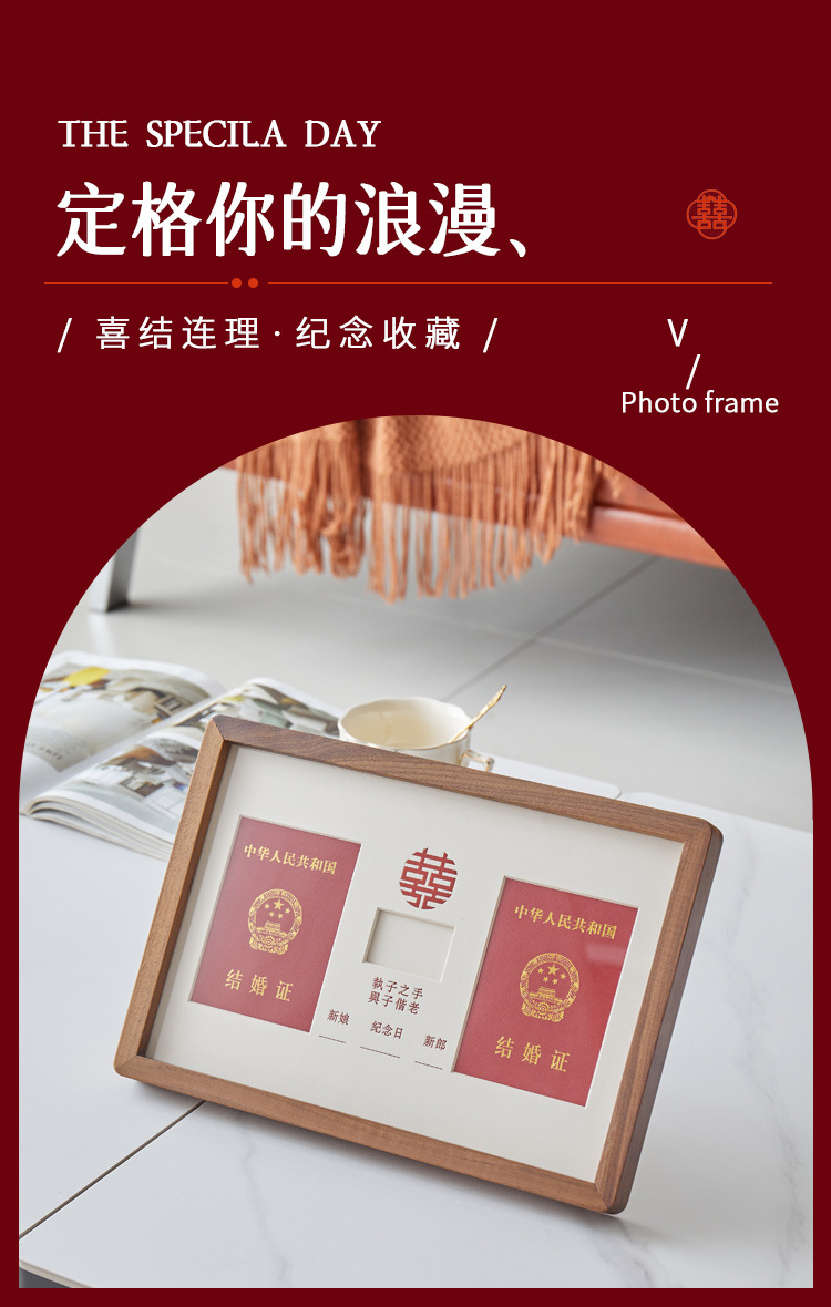 결혼 증명서 세트 테이블 결혼식 사진 등록 사진 검은 호두 단단한 나무 사진 프레임 인증서 디스플레이 프레임 사진 소품은 대신 보낼 수 있습니다