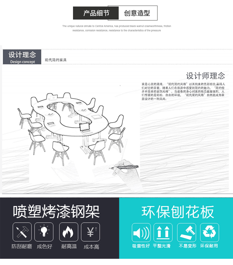 타원형 회의 테이블 접합 회의 테이블 및 의자 조합 리셉션 테이블 레저 데스크 협상 테이블 회의 훈련 테이블