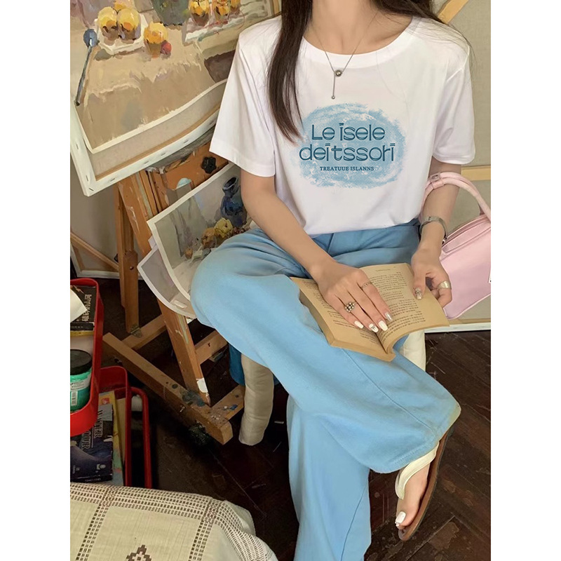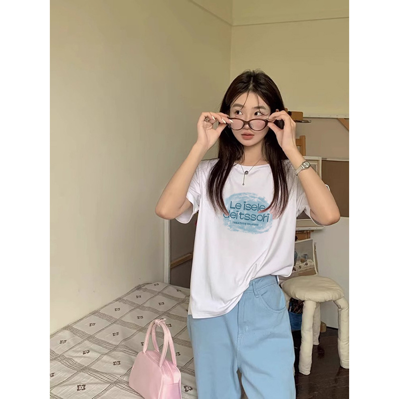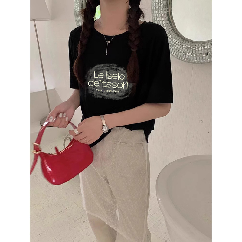 빈티지 세련된 홍콩 스타일 블랙 반팔 퓨어 코튼 티셔츠 여성 Ins 유행 여름 오버 사이즈 디자인 루즈 탑