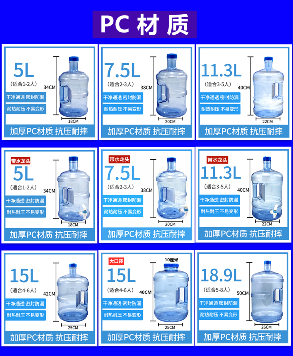 5L 7.5L 수도꼭지 10L 가정용 차 바 마시는 기계 버킷 휴대용 미네랄 스프링 순수한 물 버킷 저장 버킷