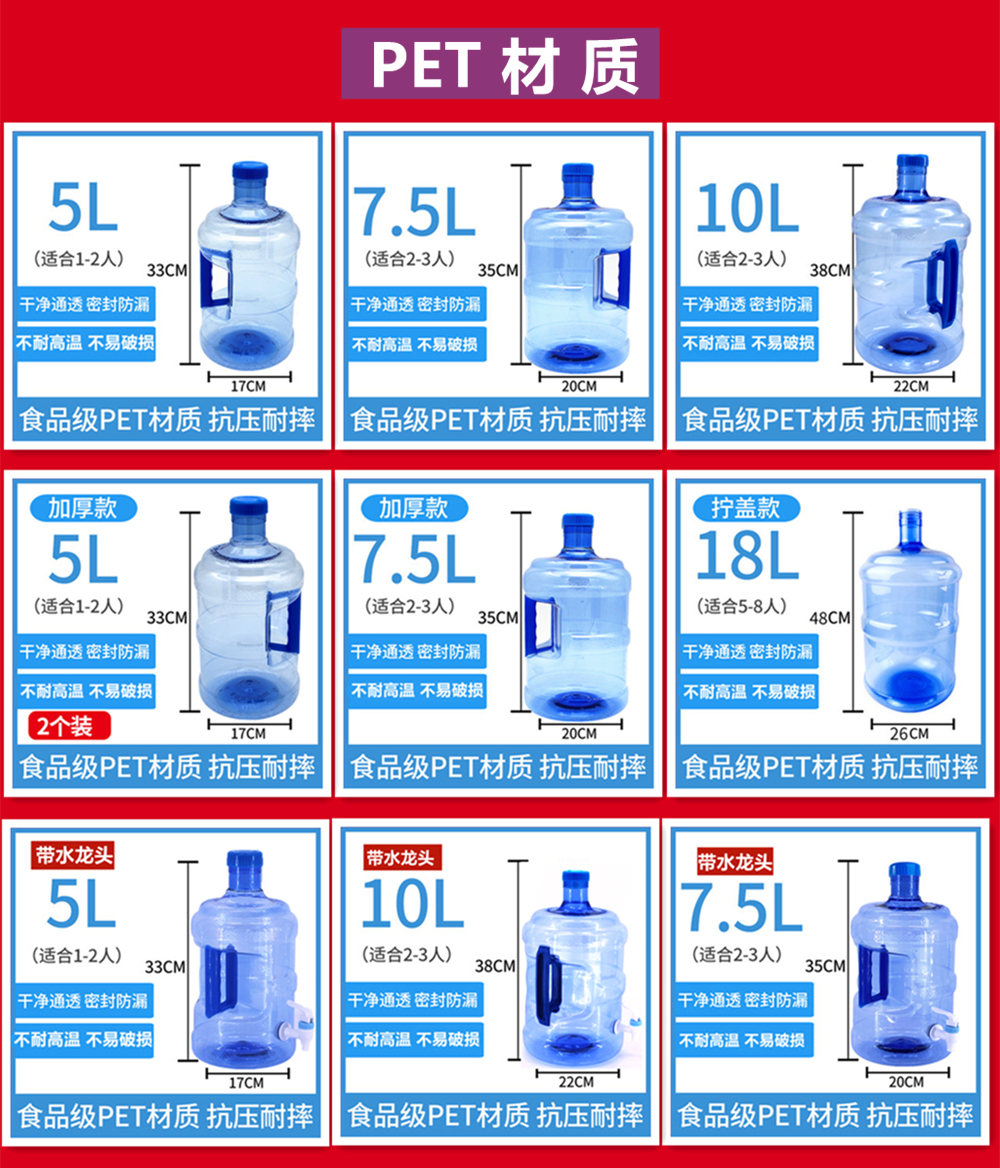 • 7.5L PET에는 예비 캡이 함께 제공됩니다.