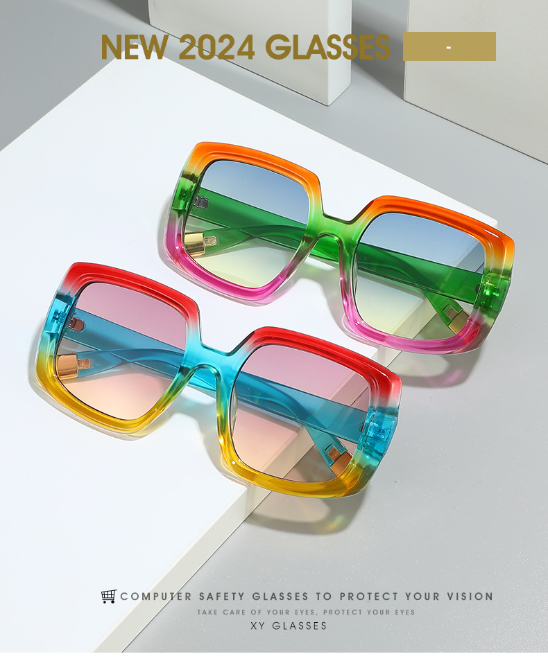 2024 새로운 유럽과 미국의 사각형 멀티 컬러 선글라스 국경 패션 선글라스 여성의 하이 엔드 안경 도매