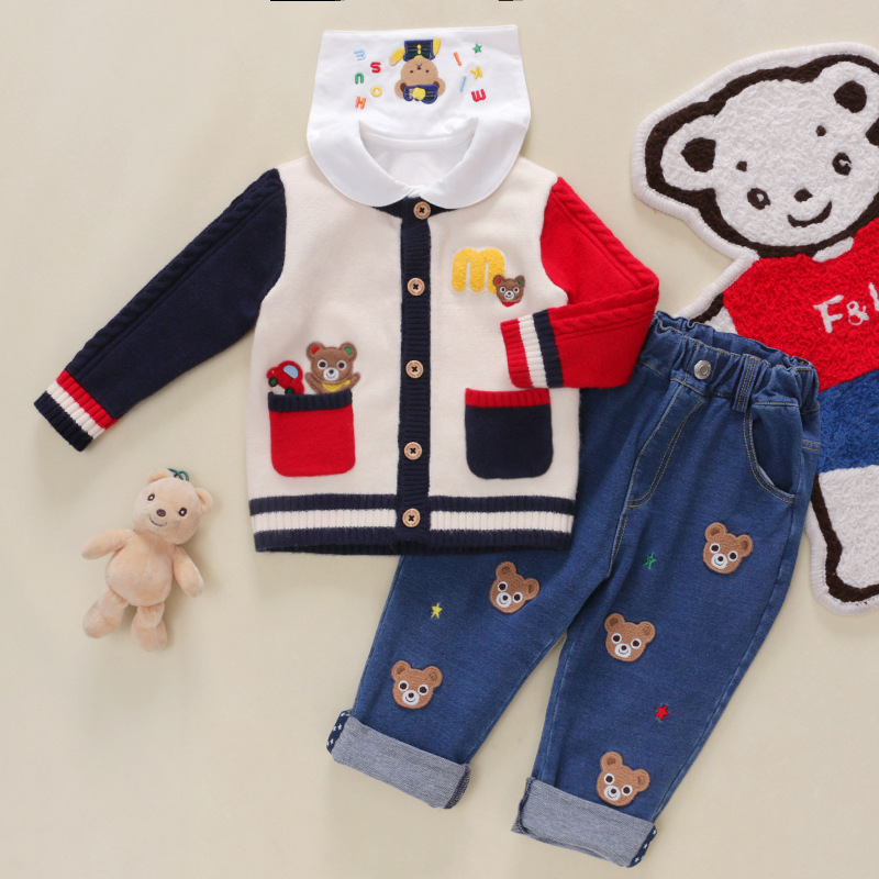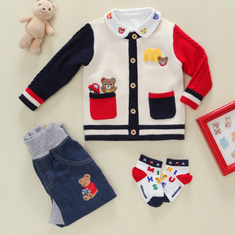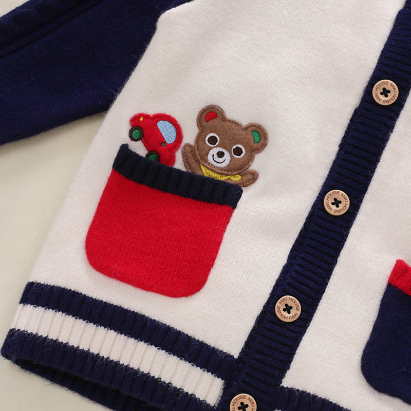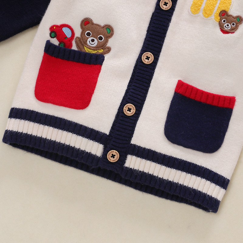 前后卡通小动物立体刺绣,前面两个真实口袋