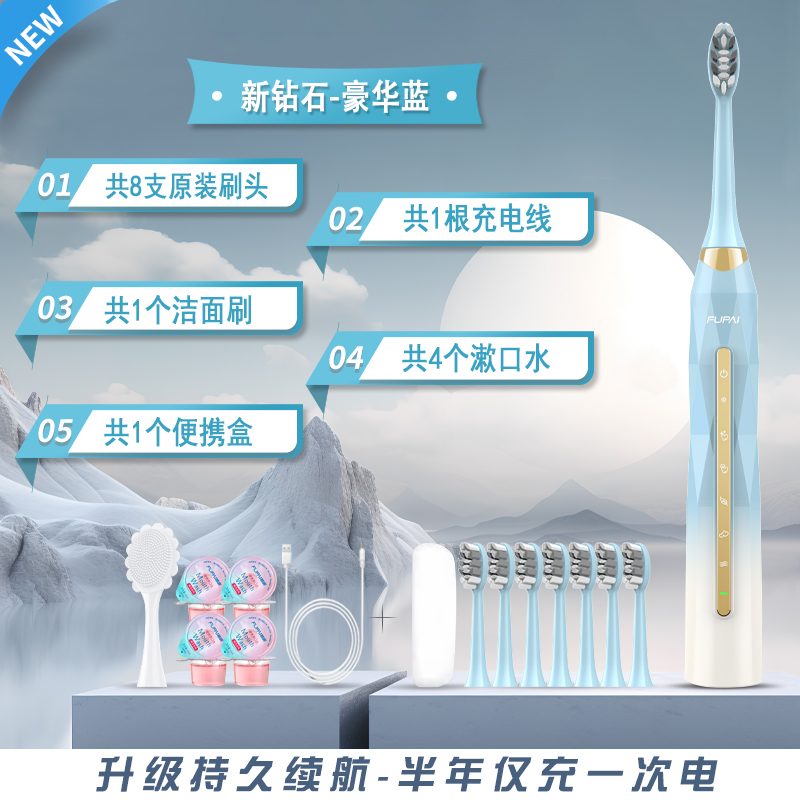 • 새로운 다이아몬드 모델 - 배터리 수명 반년★럭셔리 모델 [오션블루] 칫솔모 8개 + 휴대용 박스 +