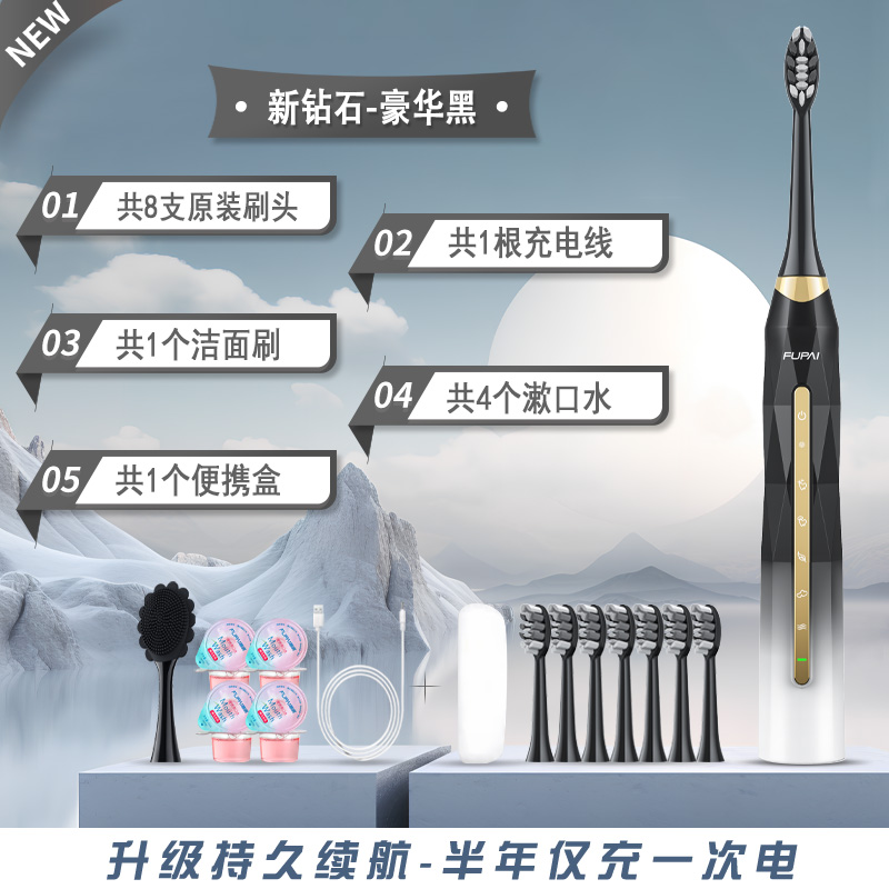• 새로운 다이아몬드 모델 - 배터리 수명 반년★럭셔리 모델 [일본 블랙] 칫솔모 8개 + 휴대용 박스 +