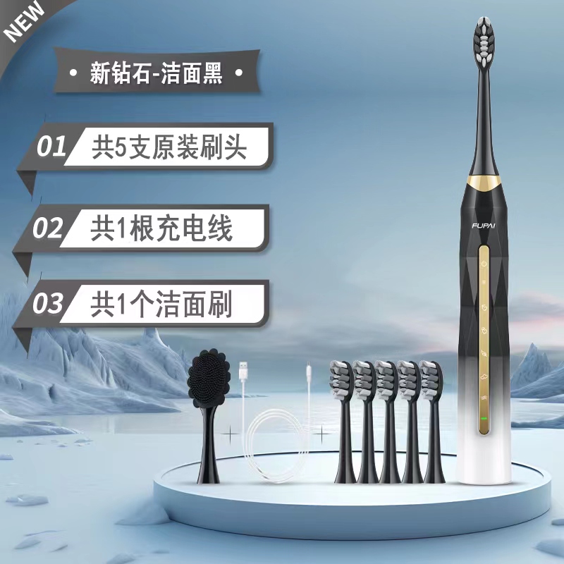 • 뉴 다이아몬드 모델-클렌징 패키지 [일본 블랙]★총 5개의 브러쉬 헤드 + 클렌징 브러쉬