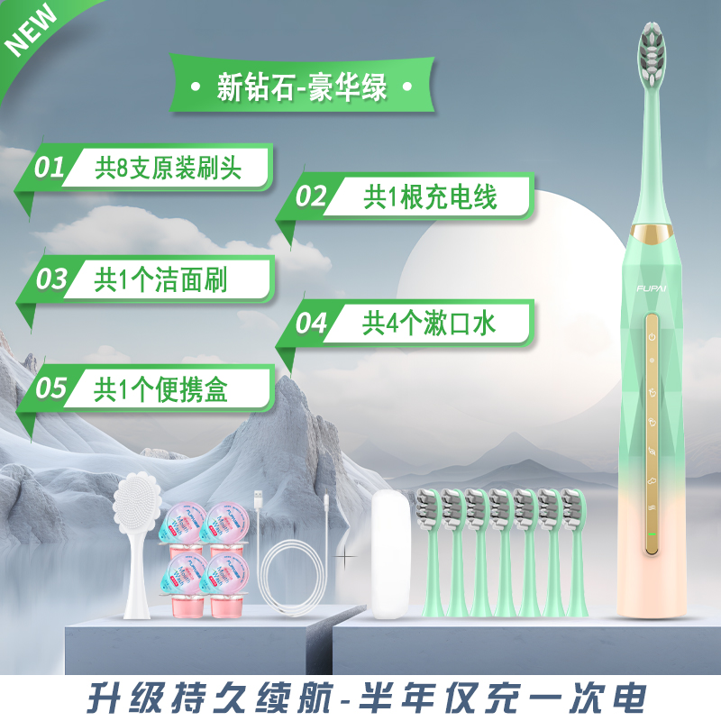 • 새로운 다이아몬드 모델 - 배터리 수명 반년★럭셔리 모델 [패스트럴 그린] 칫솔모 8개 + 휴대용 박스 +