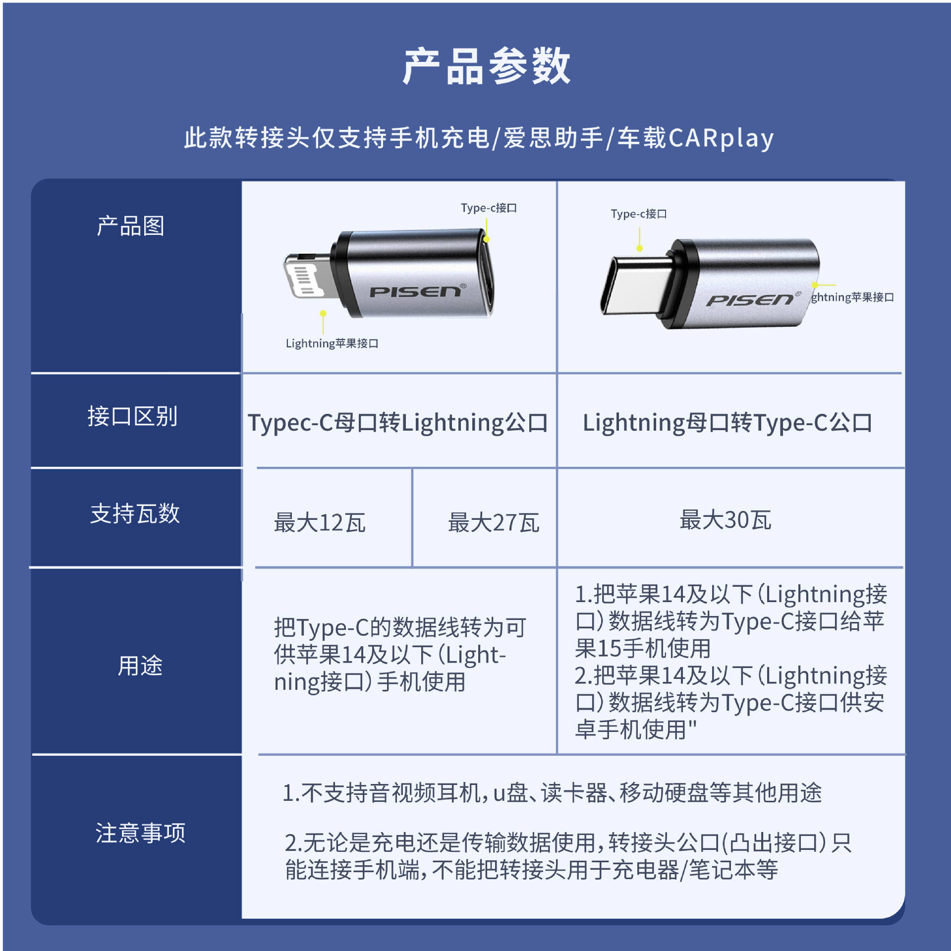Pinsheng 적용 가능한 iPhone15 번개 컨버터 typec 휴대 전화 데이터 케이블 어댑터 PD 고속 충전 와이어 15P