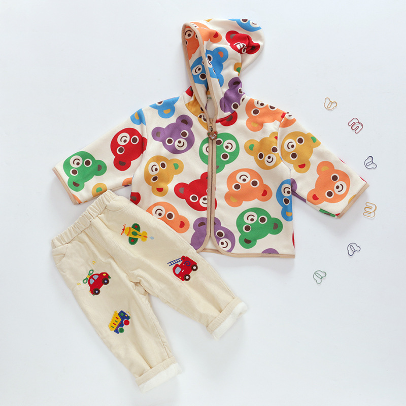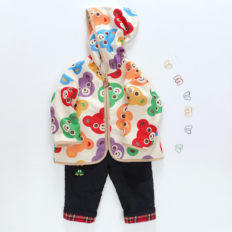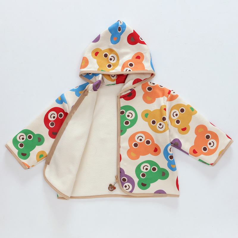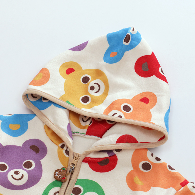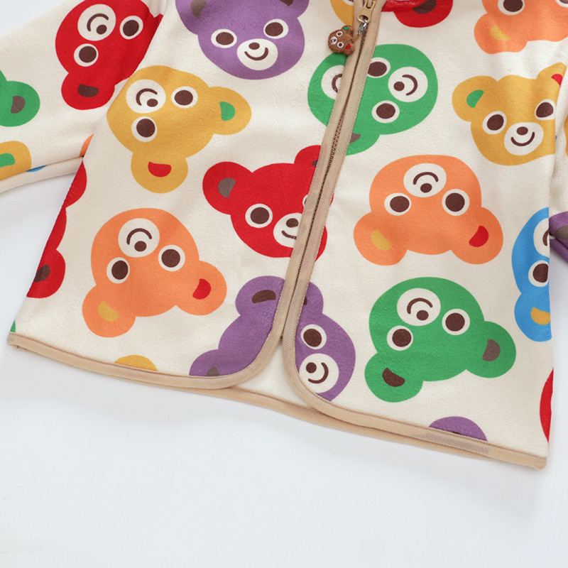 秋冬新款男女童彩色熊满印摇粒绒保暖外套
