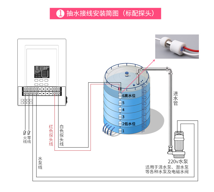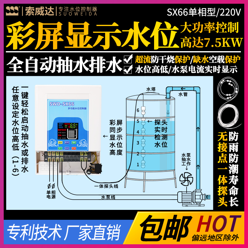 완전 자동 수위 컨트롤러 워터 타워 펌핑 배수 액체 레벨 유도 디스플레이 워터 펌프 보호 단일 단계 66