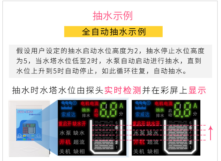 완전 자동 수위 컨트롤러 워터 타워 펌핑 배수 액체 레벨 유도 디스플레이 워터 펌프 보호 단일 단계 66스토어 가기