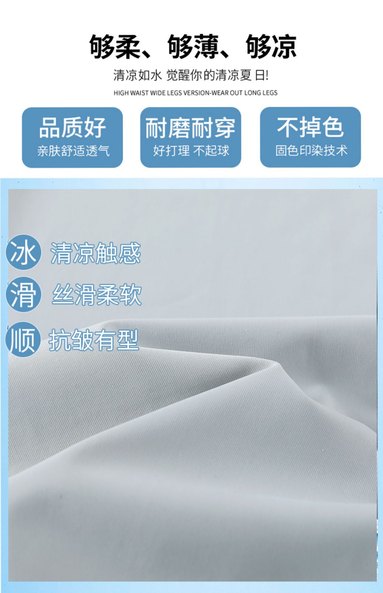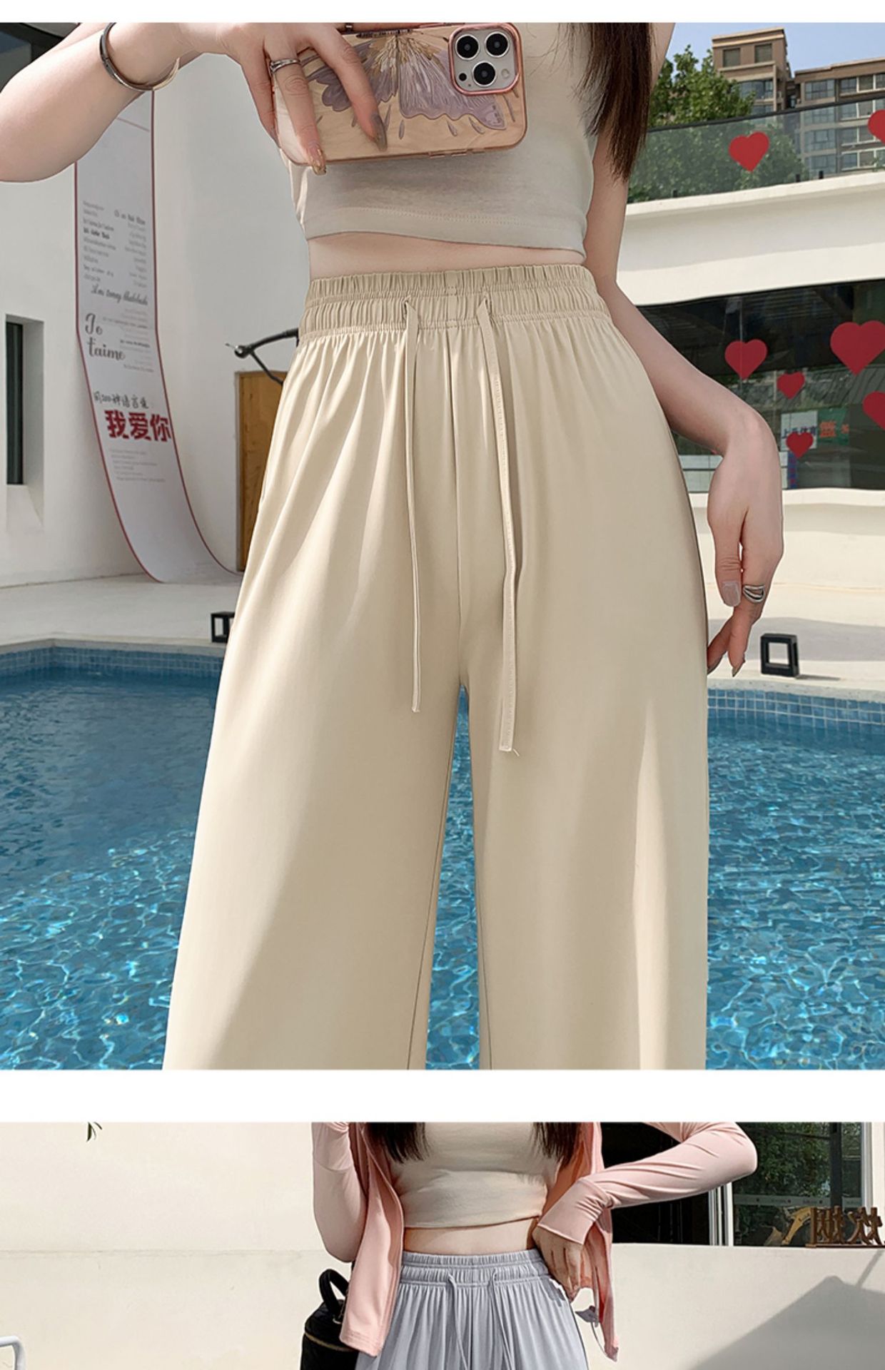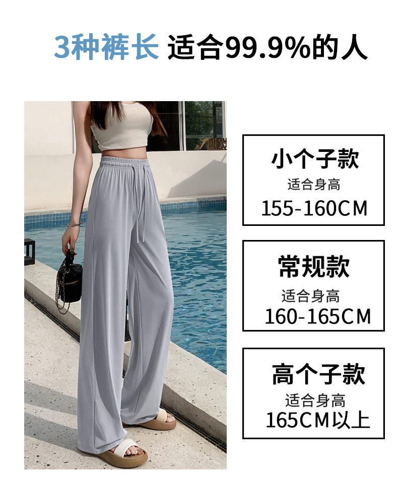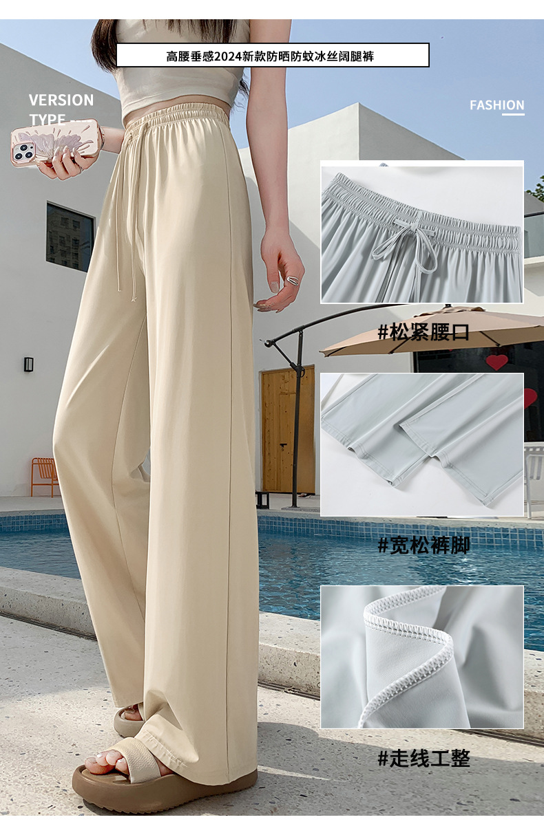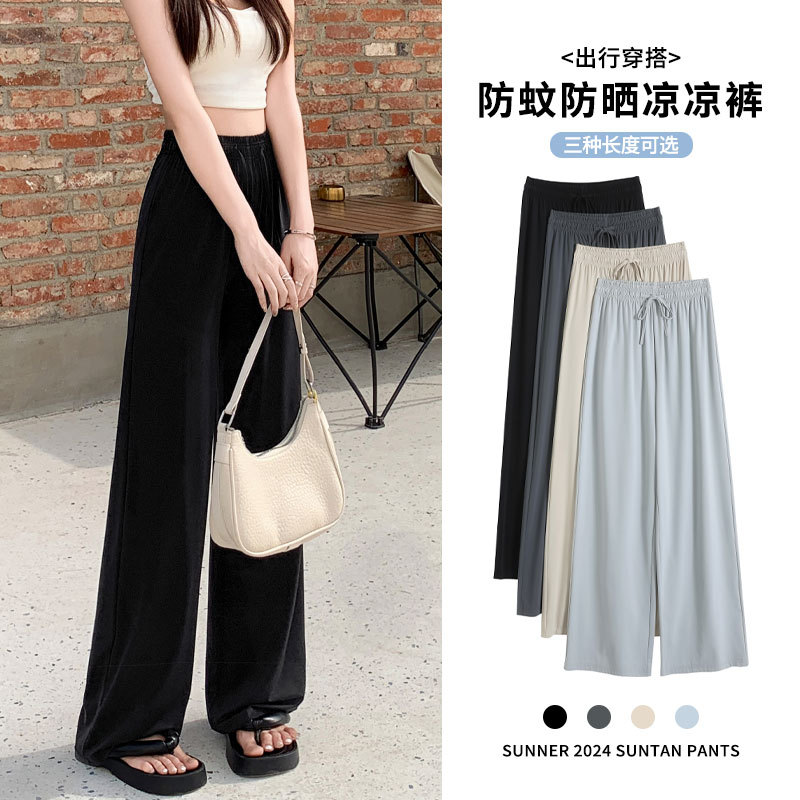 높은 허리 포장 얼음 실크 선 스크린 넓은 다리 바지 여성의 여름 얇은 캐주얼 빠른 건조 쿨 스트레이트 바지 2024 새로운스토어 가기