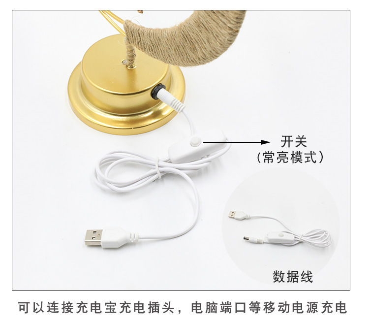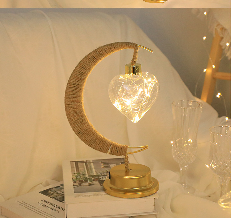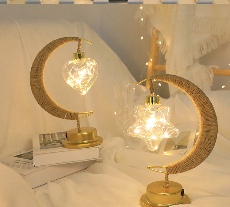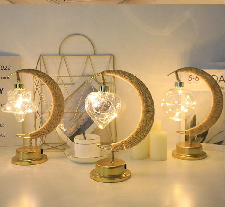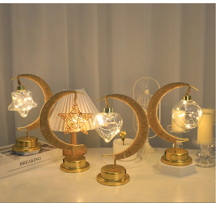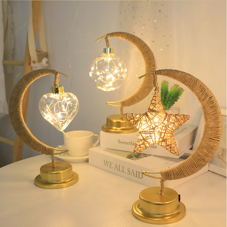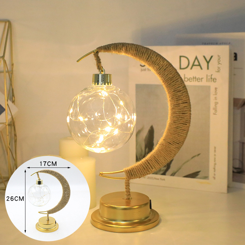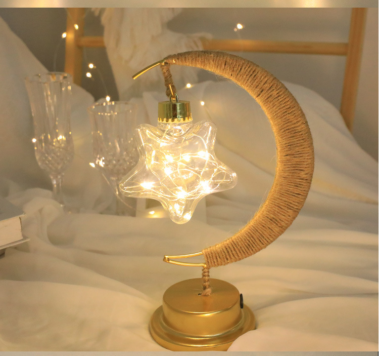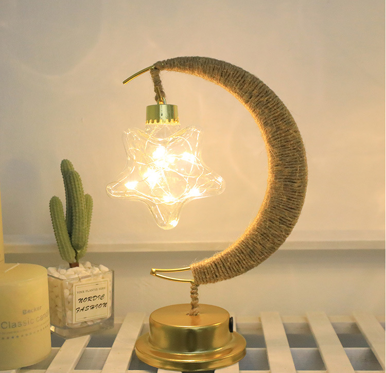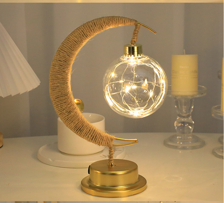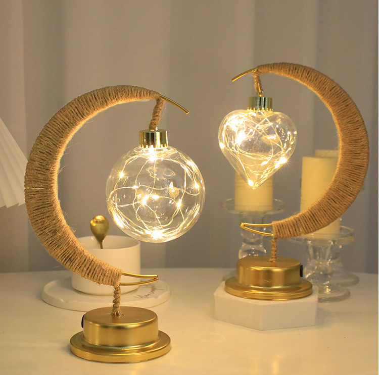 국경 간 새로운 LED 플러그인 대마 로프 스타 램프 달 램프 라운드 볼 빛나는 USB 장식 선물 야간 조명