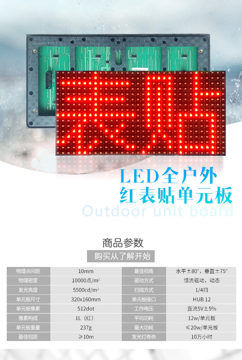 LED 디스플레이 P10 표면 장착 반 야외 빨간색 유닛 보드 led 전자 스크린 모듈 완성 된 전원 제어 카드스토어 가기