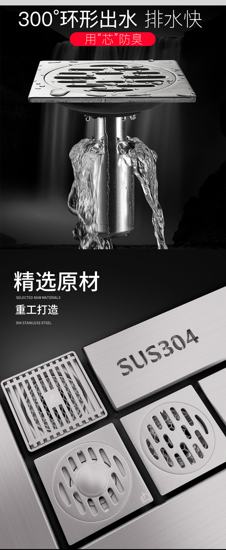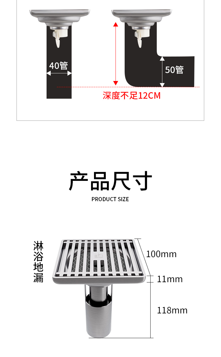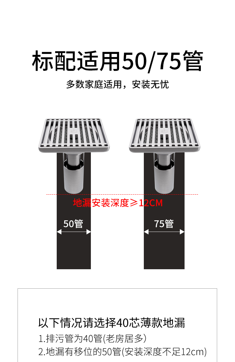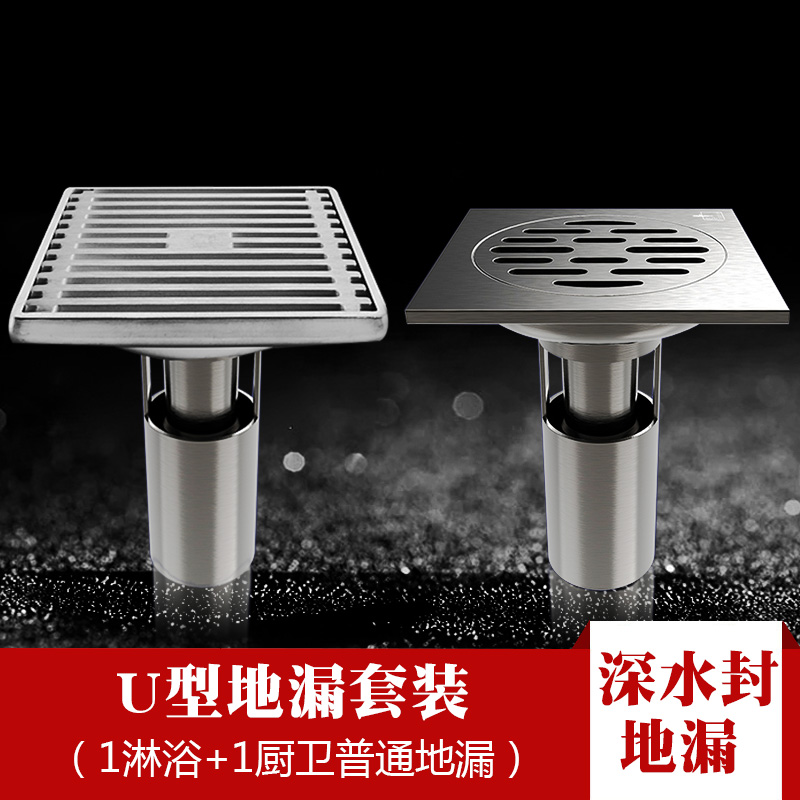 套餐分类里有U型不锈钢地漏与T型ABS防臭地漏,亲们选择时注意一下,U型安装要求较高,T型安装是通用型。