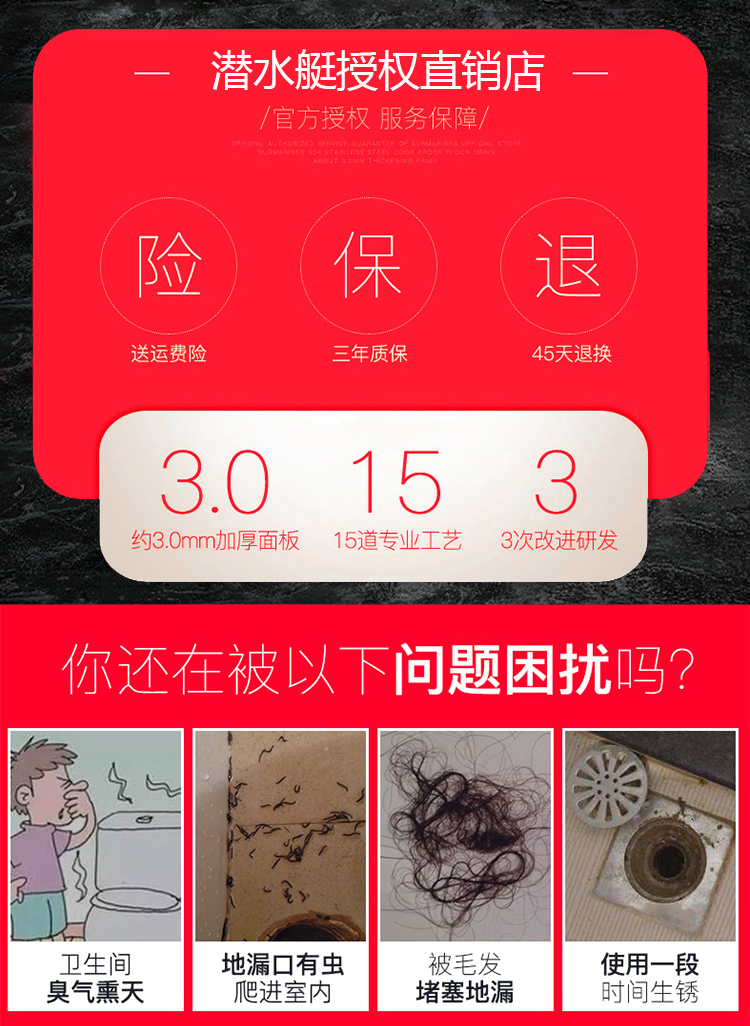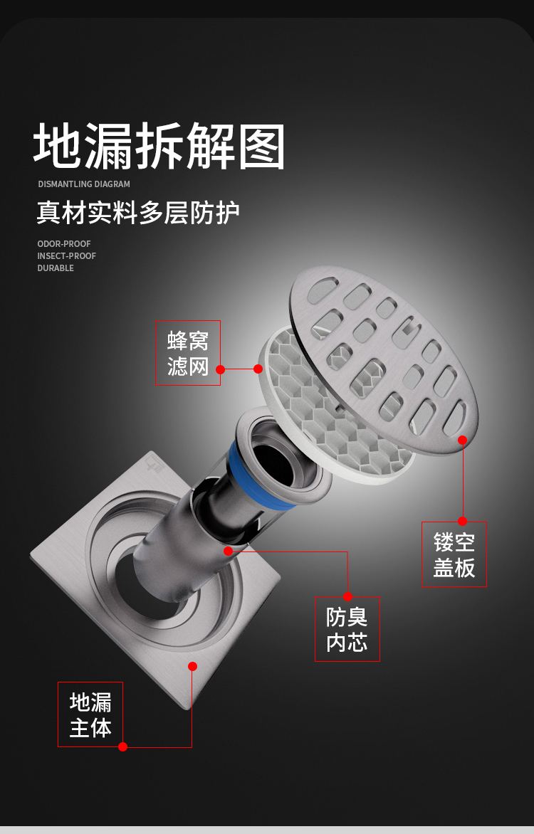 温馨提示:洗衣机地漏为了不影响洗衣机排水,厂家标配里面没有蜂窝过滤网,有需要客户请备注或联系客服!