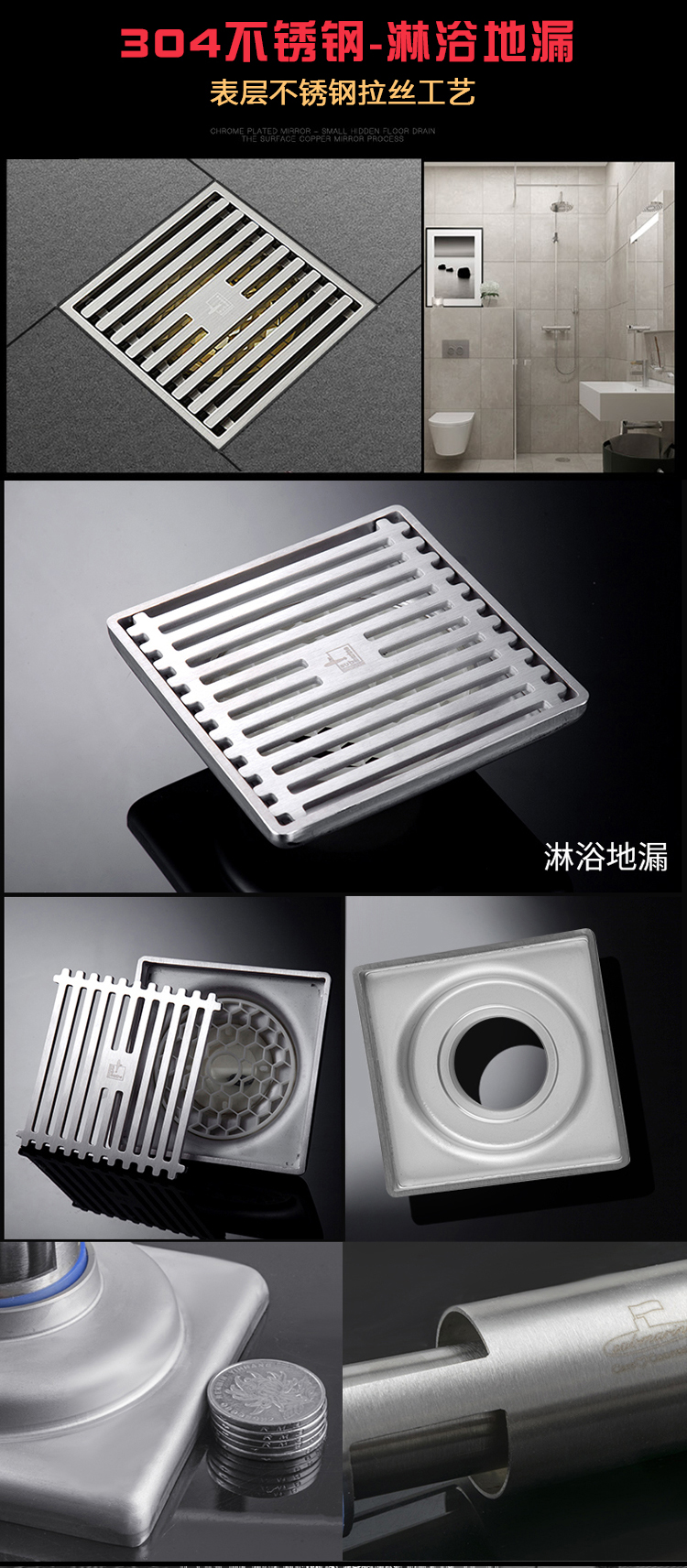 • 깊은 물 밀봉 U자형: 샤워대용량 바닥 배수구.