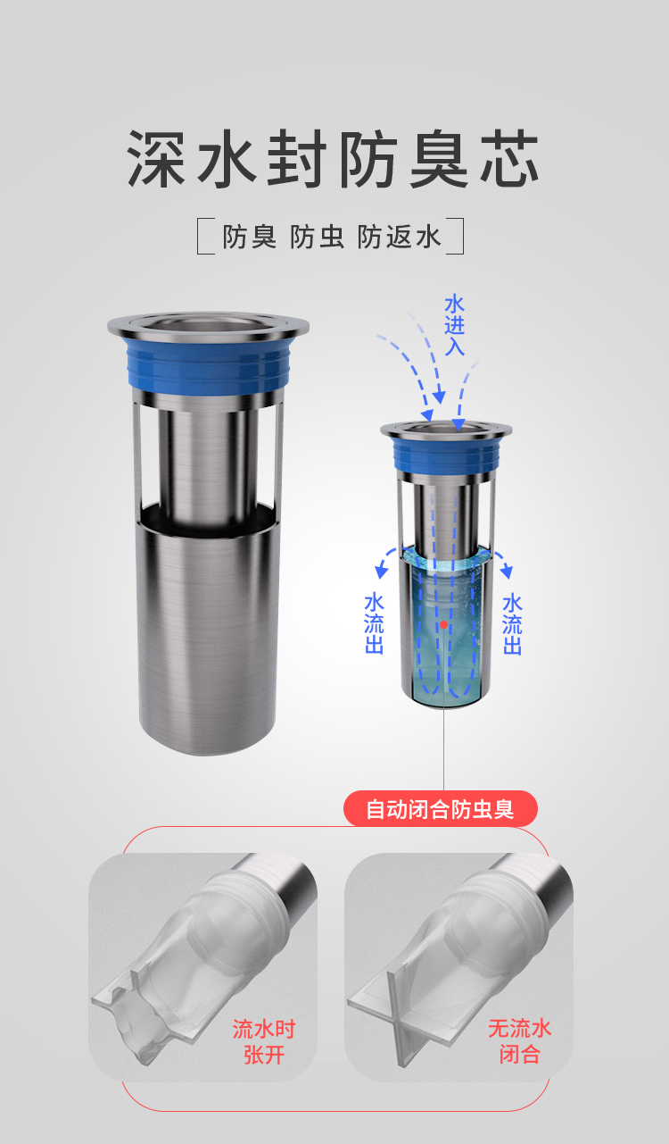 • 심수 밀봉 U자형: 주방 및 욕실 바닥 배수구