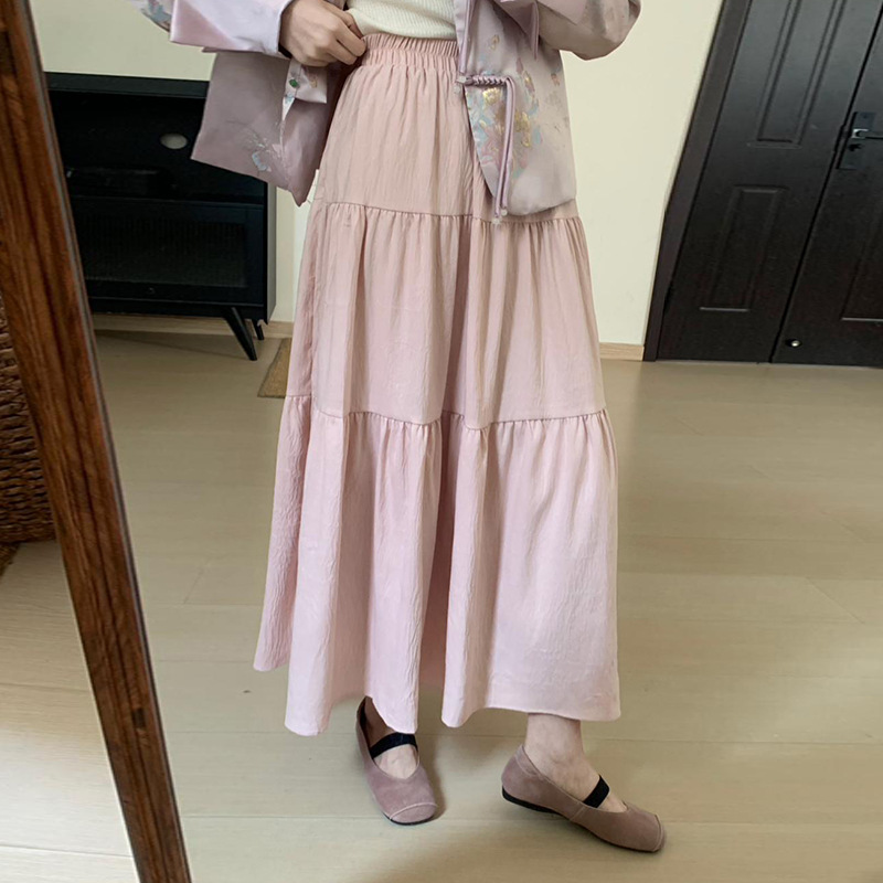 여자 높은 허리 슬림 핏 슬림 핏 중간 길이 스커트 2024 여름 새로운 한국 스타일 슬림 핏 올매치 얇은 트렌디 스커트