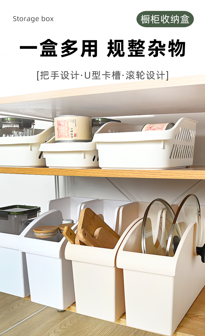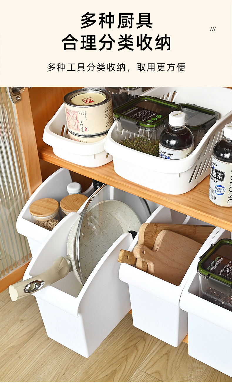 싱크대 저장 랙 아래 풀리 냄비 덮개가있는 주방 플라스틱 냄비 캐비닛 저장 상자 푸시 풀 플라스틱 조미료