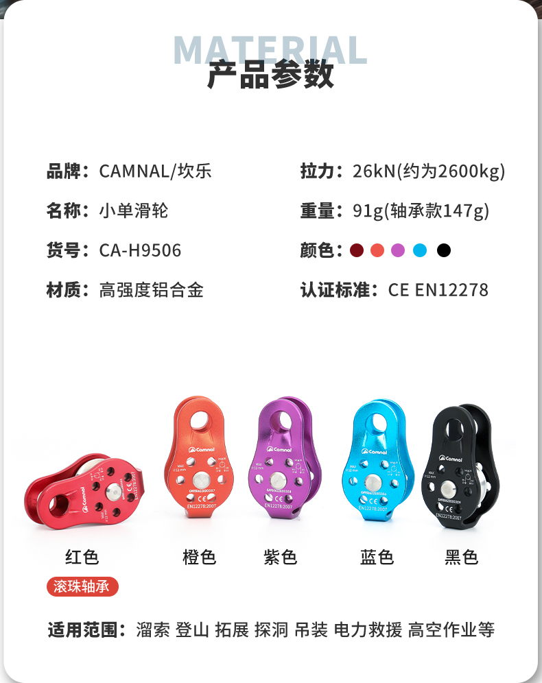 야외 등산 암벽 등반 터널 풀리 고정 단일 풀리 횡단 구조 터널 게양 알루미늄 합금 풀리