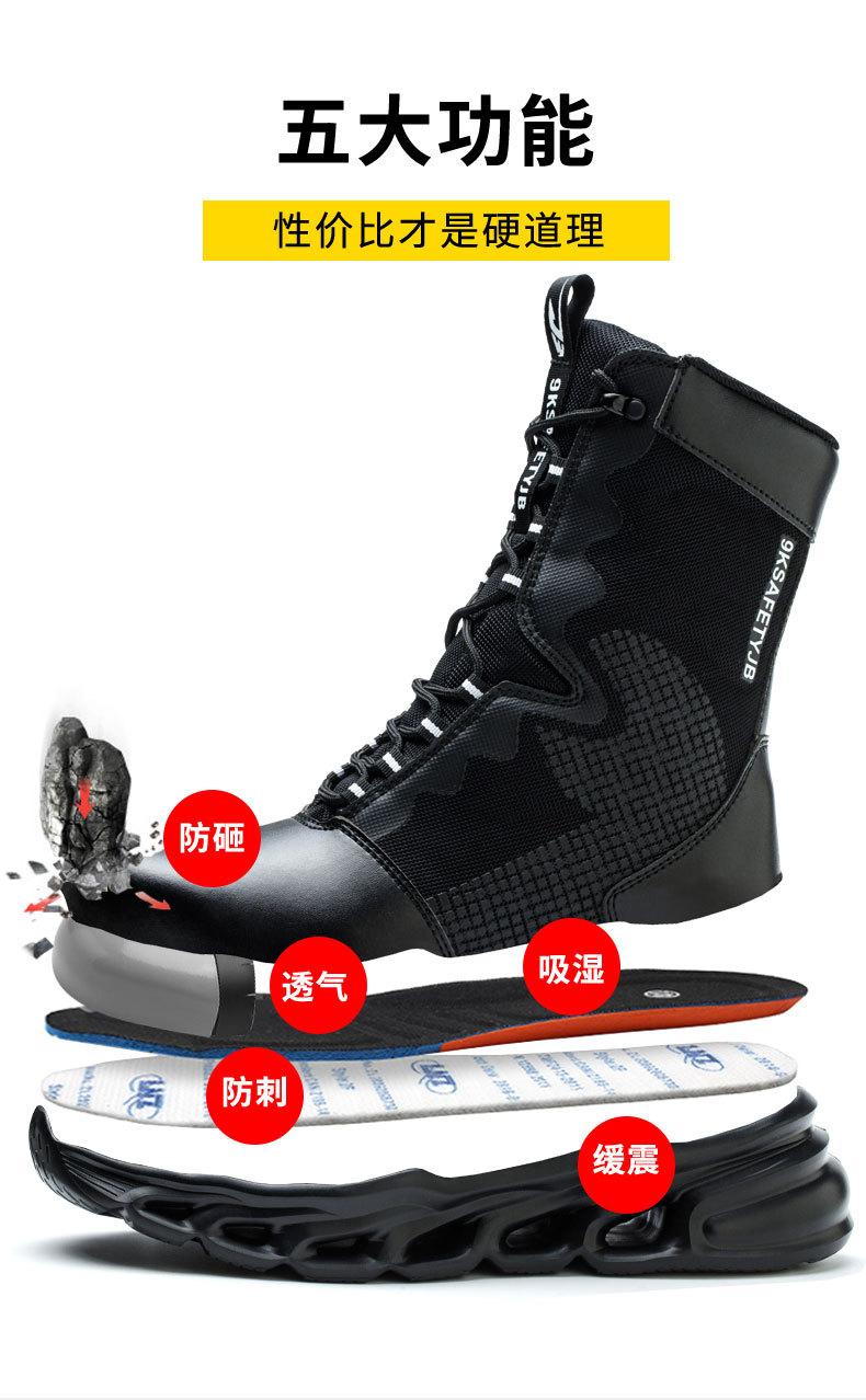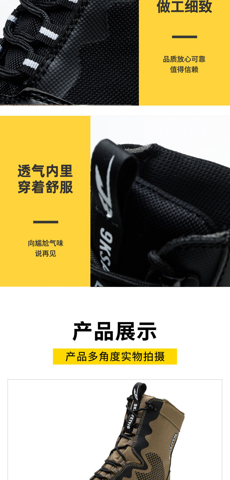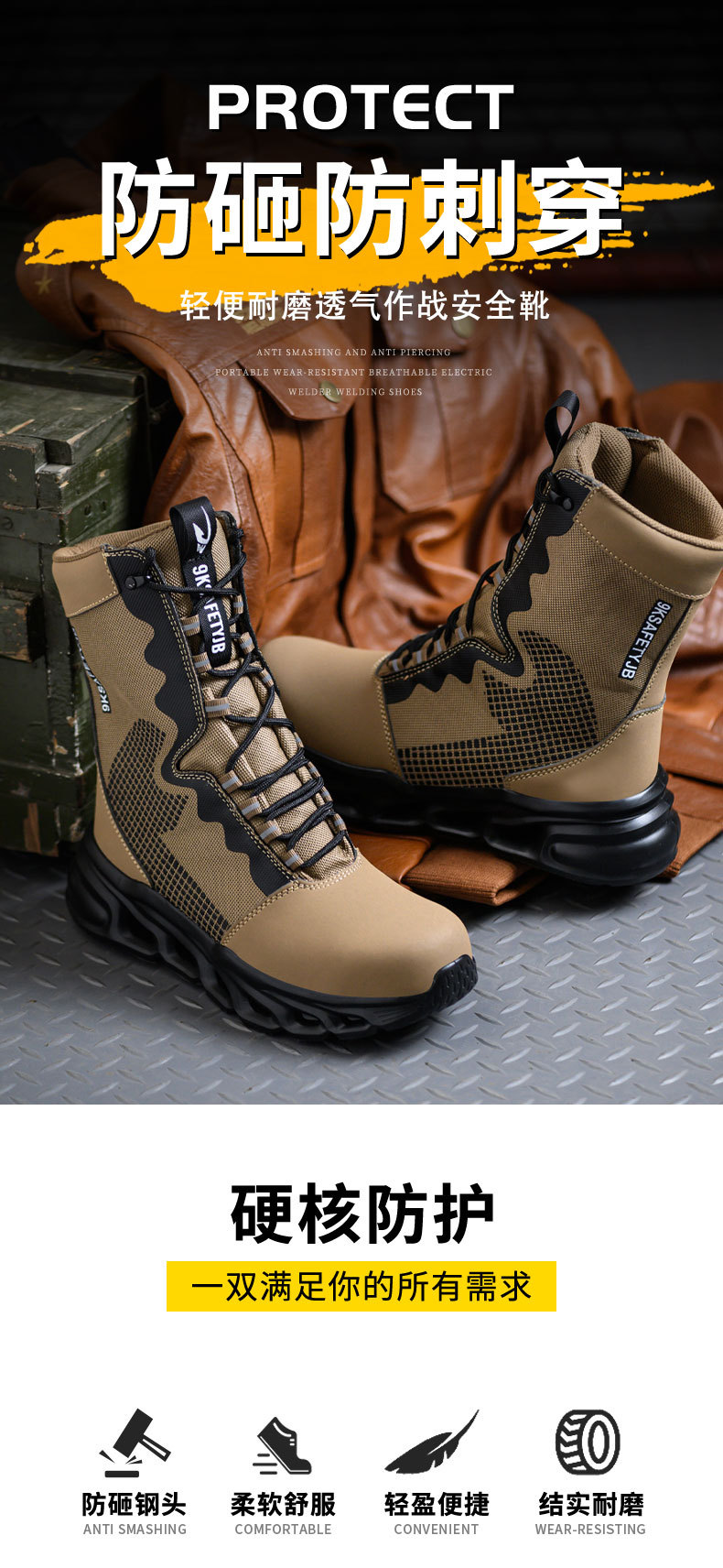 유럽과 미국의 가볍고 통기성 좋은 안전화 방진 방수 등산 야외 내구성 신발 하이탑 편안한 훈련용 부츠 남성용