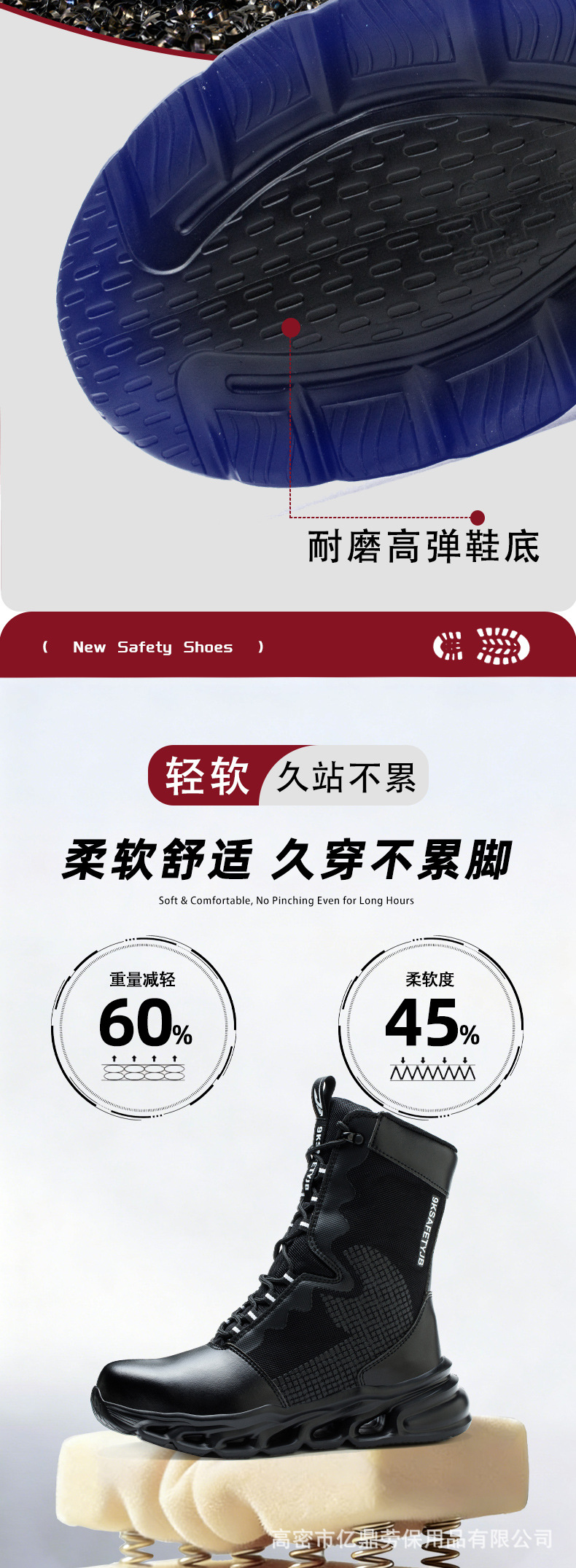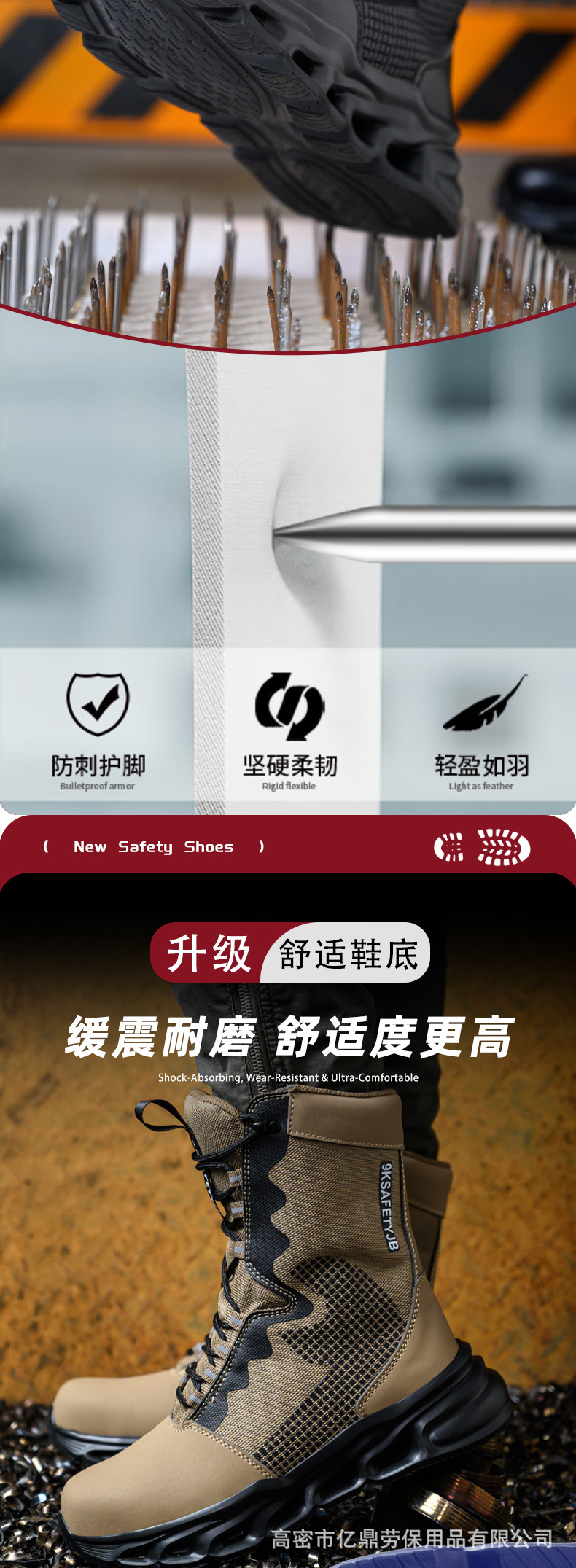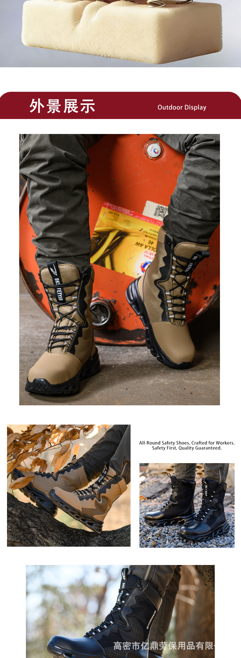 유럽과 미국의 가볍고 통기성 좋은 안전화 방진 방수 등산 야외 내구성 신발 하이탑 편안한 훈련용 부츠 남성용