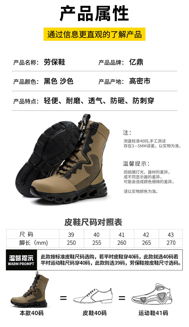 유럽과 미국의 가볍고 통기성 좋은 안전화 방진 방수 등산 야외 내구성 신발 하이탑 편안한 훈련용 부츠 남성용스토어 가기