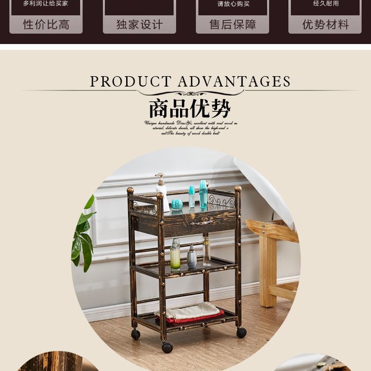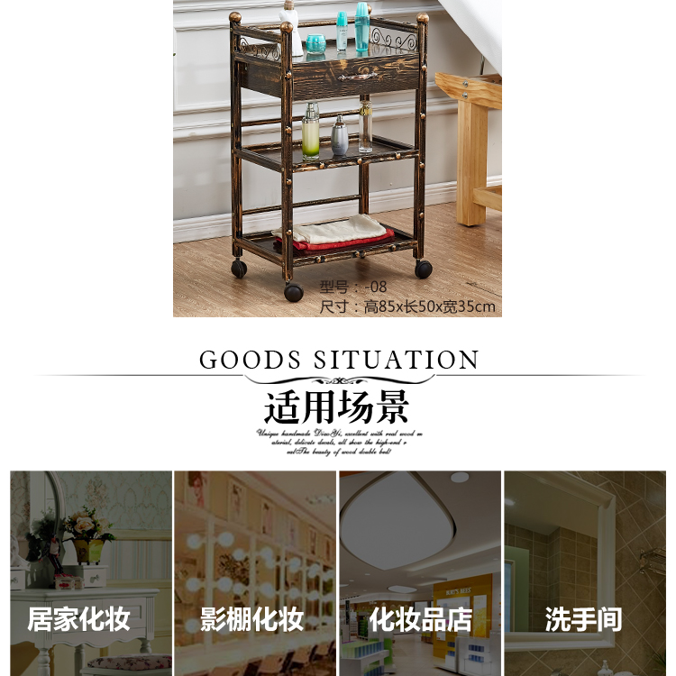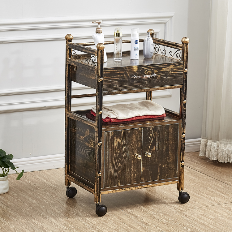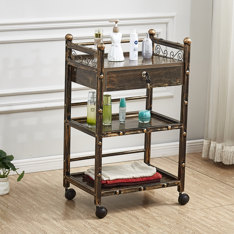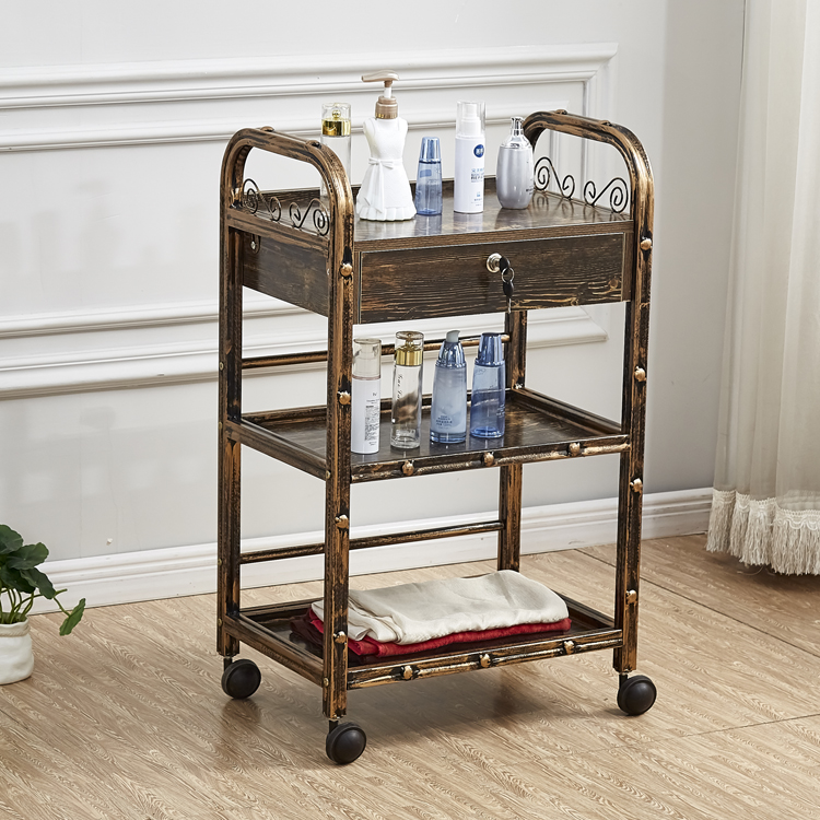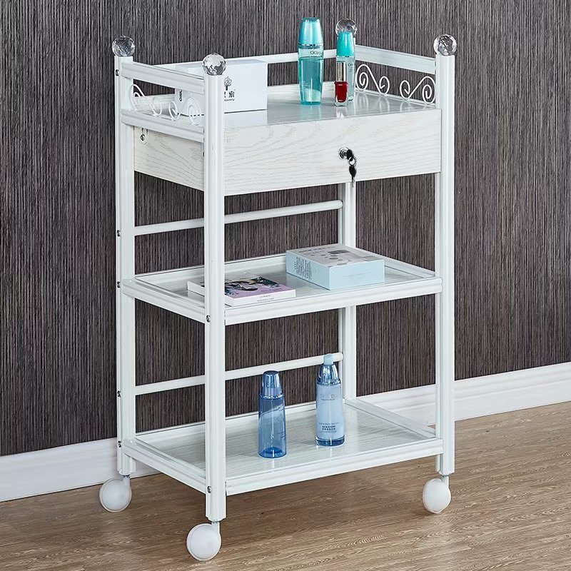 뷰티 카트 유럽 스타일의 다기능 뷰티 살롱 카트 3 층 도구 카트 악기 서랍이있는 모바일 랙