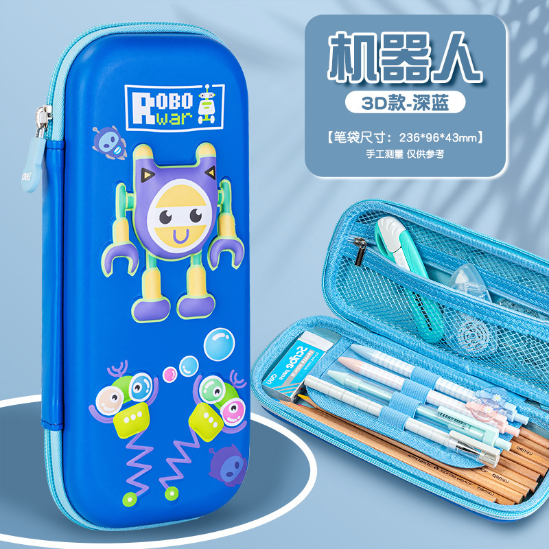 델리 67061 연필 케이스 3D 만화 로봇 대형 용량 연필 케이스 소년 소녀 문구 케이스 연필 케이스