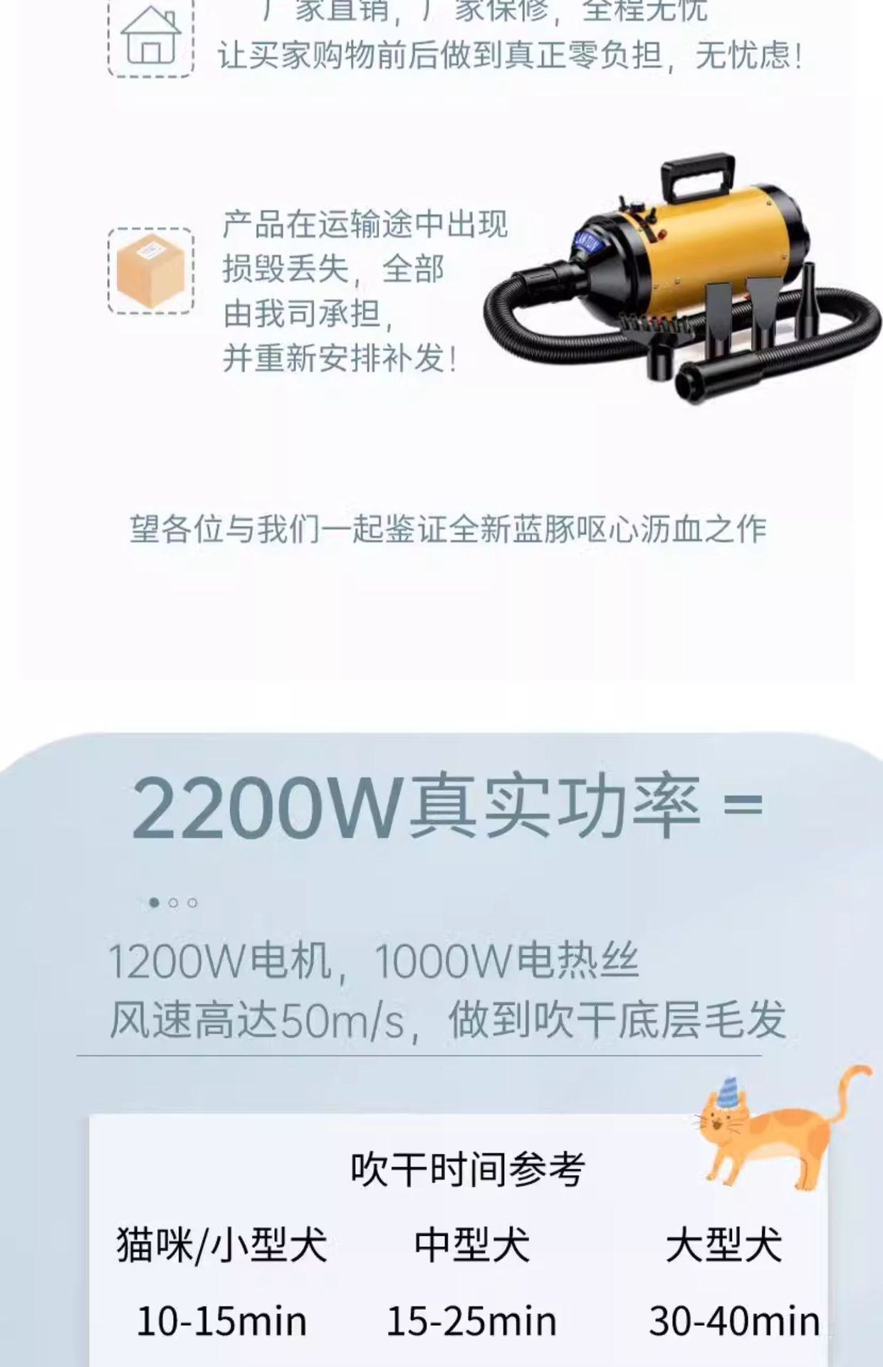 블루 돌고래 애완 동물 헤어 드라이어 개 특수 고출력 애완 동물 헤어 드라이어 대형 개 헤어 드라이어 LT-1090A스토어 가기