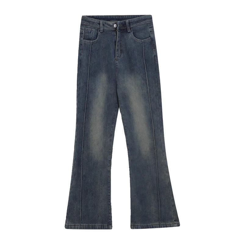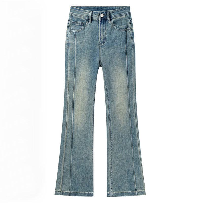 플라 레드 청바지 미국 스타일 스티칭 디자인 센스 슬림 핏 스트레치 작은 허리 말굽 바지 여성스토어 가기